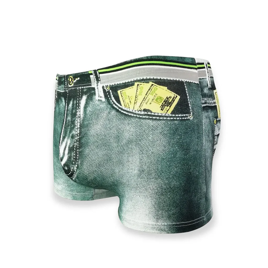Мужские джинсовые боксеры, нижнее белье с 3D принтом, мужские сексуальные шорты с карманом в виде доллара, хлопковые мягкие трусы, удобные трусики