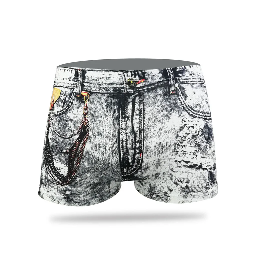 Модное нижнее белье, мужские боксеры из денима с 3D принтом, удобны...