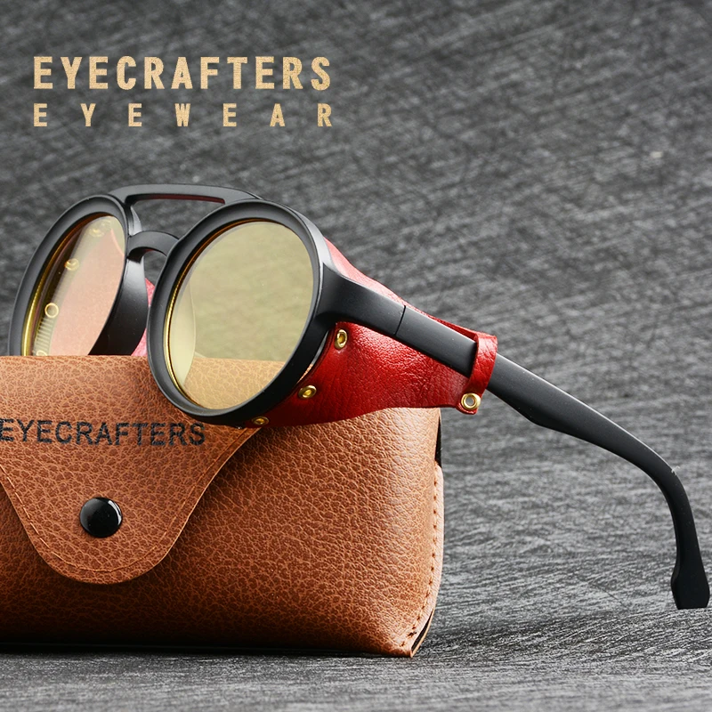 Солнцезащитные очки в стиле стимпанк для мужчин и женщин, модные готические Солнцезащитные круглые очки в стиле ретро, с кожаными боковыми оттенками, 2020