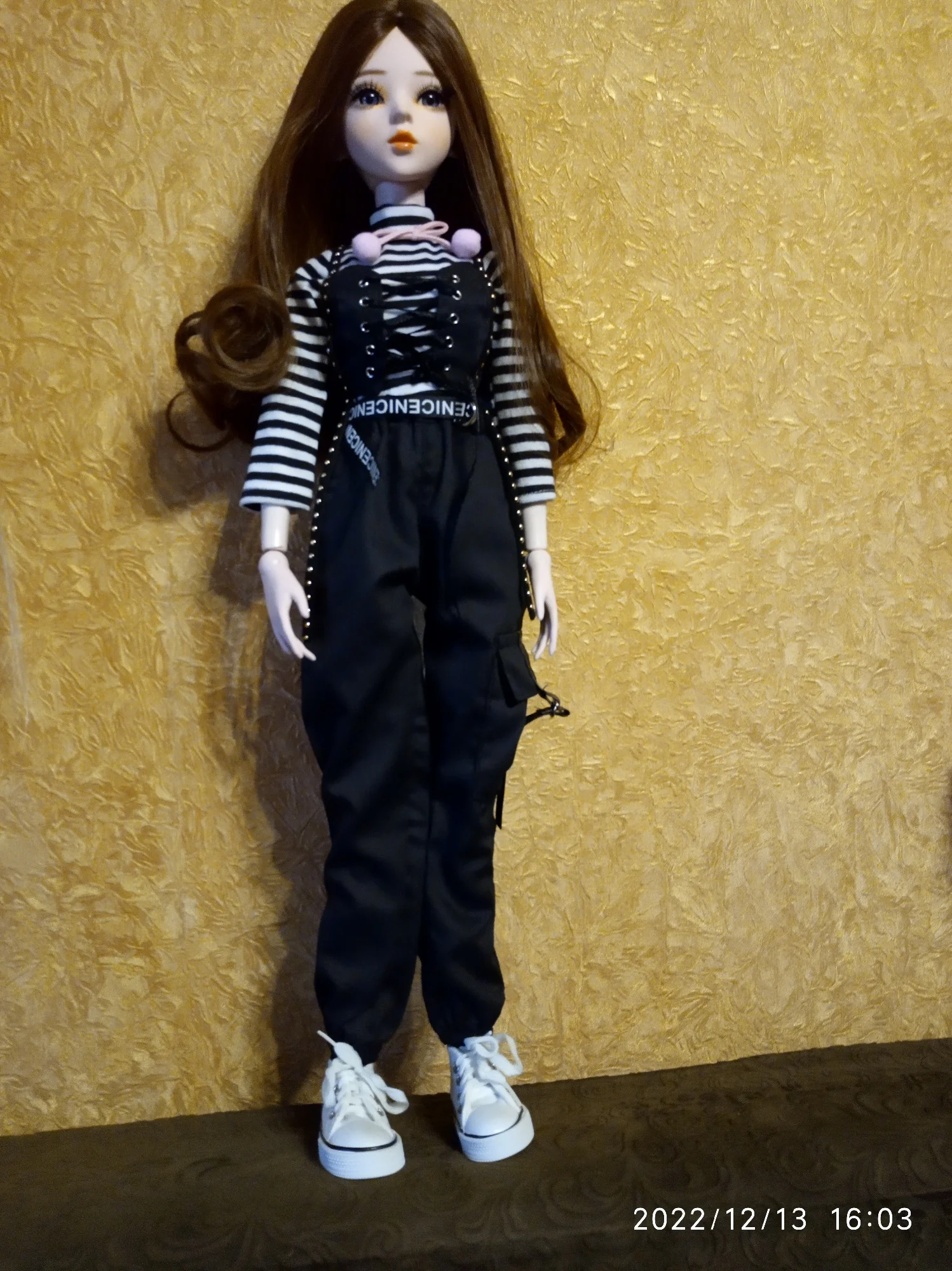 [Размер]: высота 56-60 см, обхват головы: 22 см, ширина плеч: 12 см, обхват груди: 24 см, обхват талии: 16 см, обхват бедер: 24 см, длина руки: 21,5 см, длина брюк: 30 см