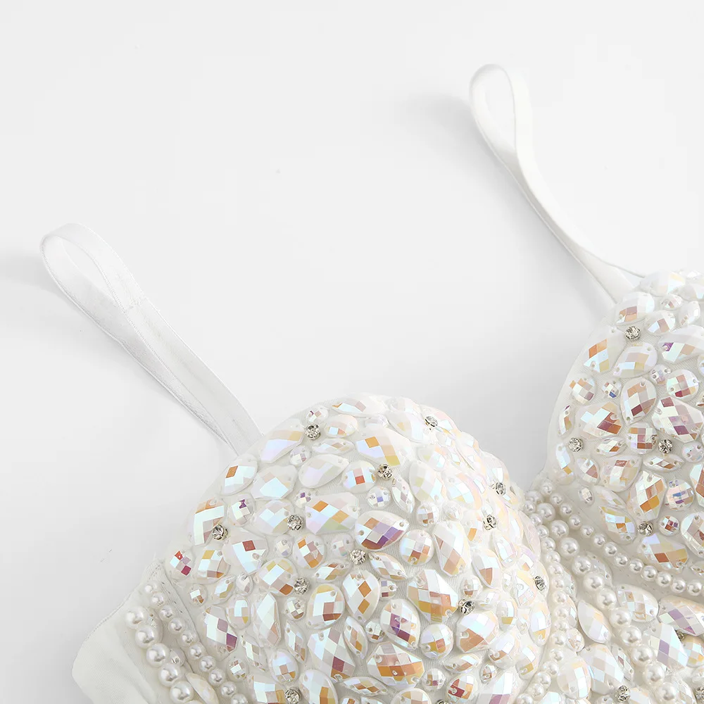 Atoshare жемчуг укороченный топ с Стразы корсет с эффектом пуш-ап бюстгальтер Бюстье Обрезанные летние женские свадебные майка уличная 2022