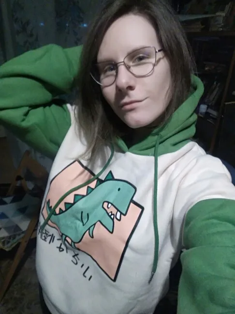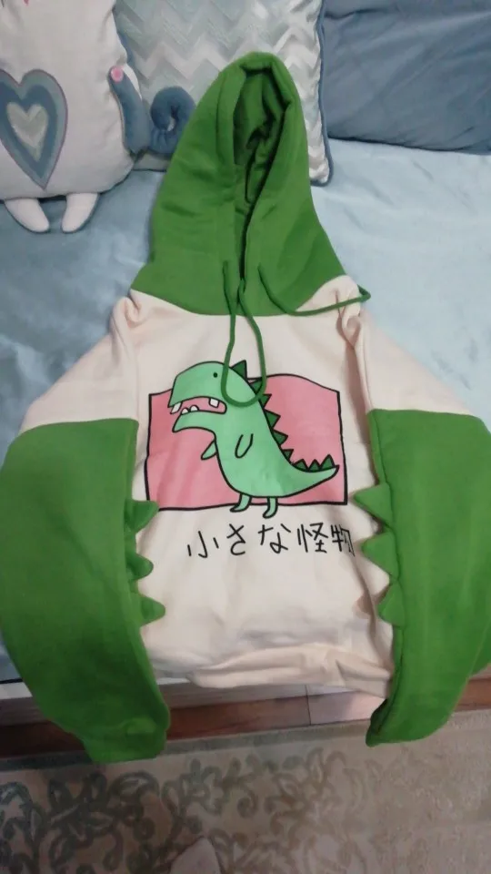 Пришло быстро, упаковано в несколько пакетов, в подарок положили миленький браслетик. Качество хорошее, особо нитки не торчали. Очень тёплая толстовочка, брала на размер М российский и рост 158, всё норм подошло. Чувствую себя потрясным динозавриком, в общем советую:)