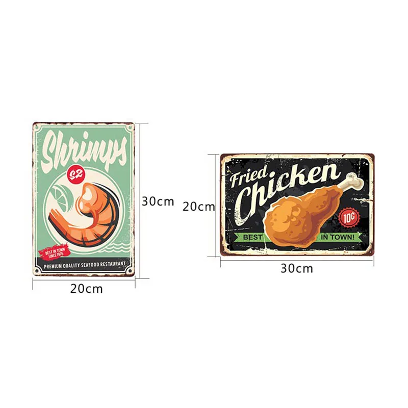 Винтажная табличка из олова для еды, металлические настенные тарелки, украшение для ресторана, бара, декоративное украшение для дома 20x30 см