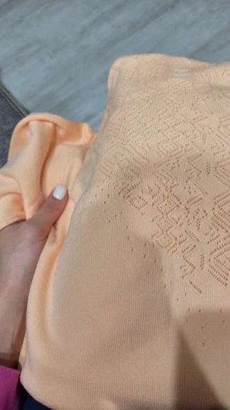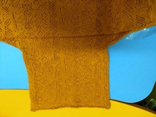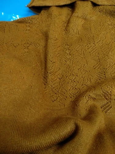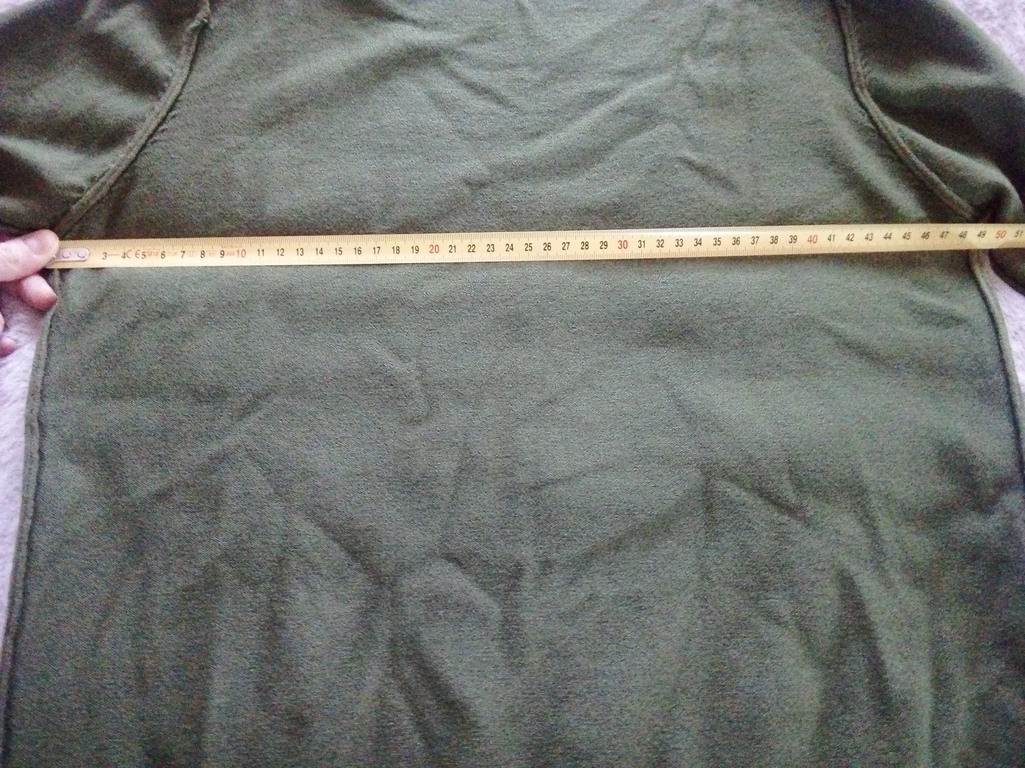 трикотаж классный, очень приятный!!! на размер 48-50 нормально . На рукаве дырочка в ажурном месте... придется зашивать....И ещё немного странная горловина: если её поворачивать, там видно боковые швы, надо будет не подворачивая носить...