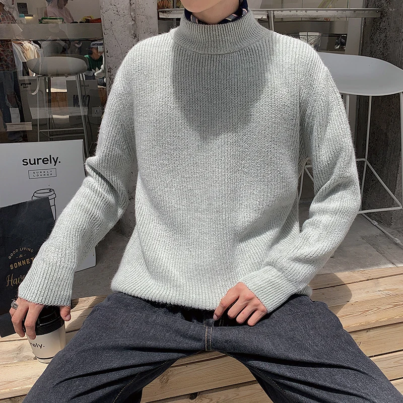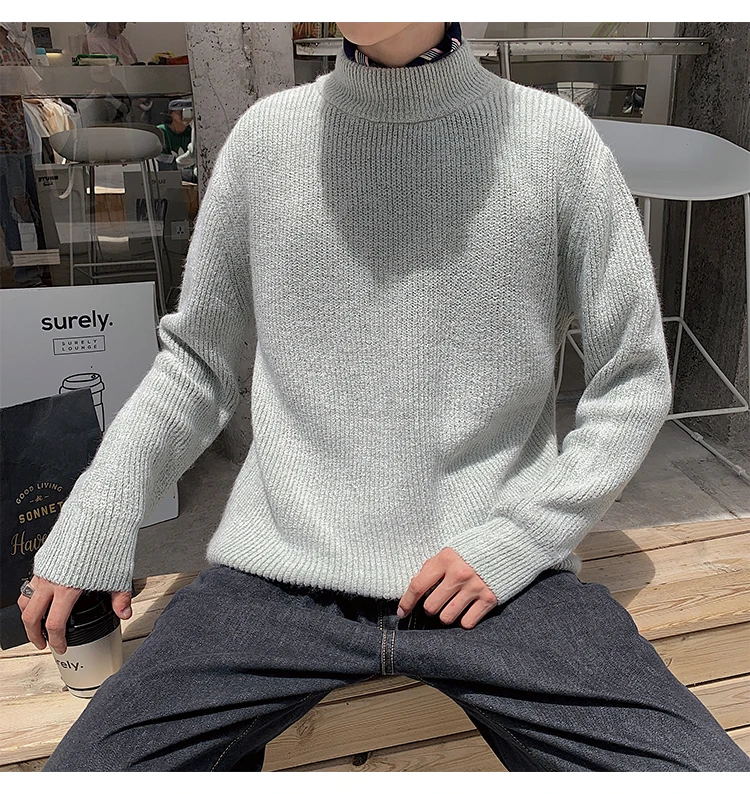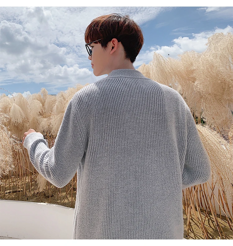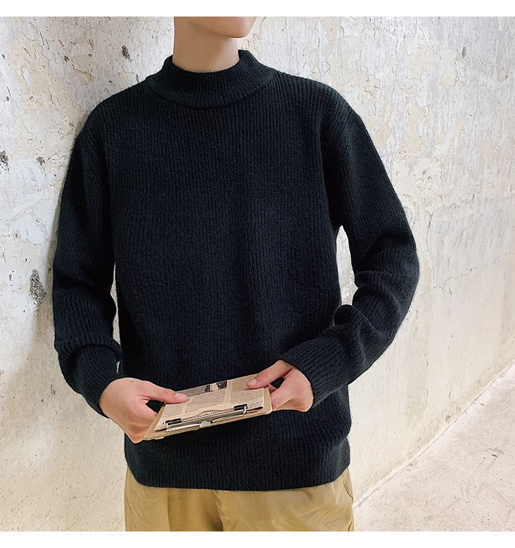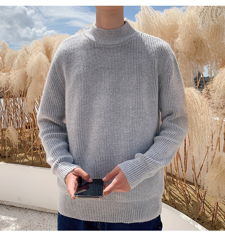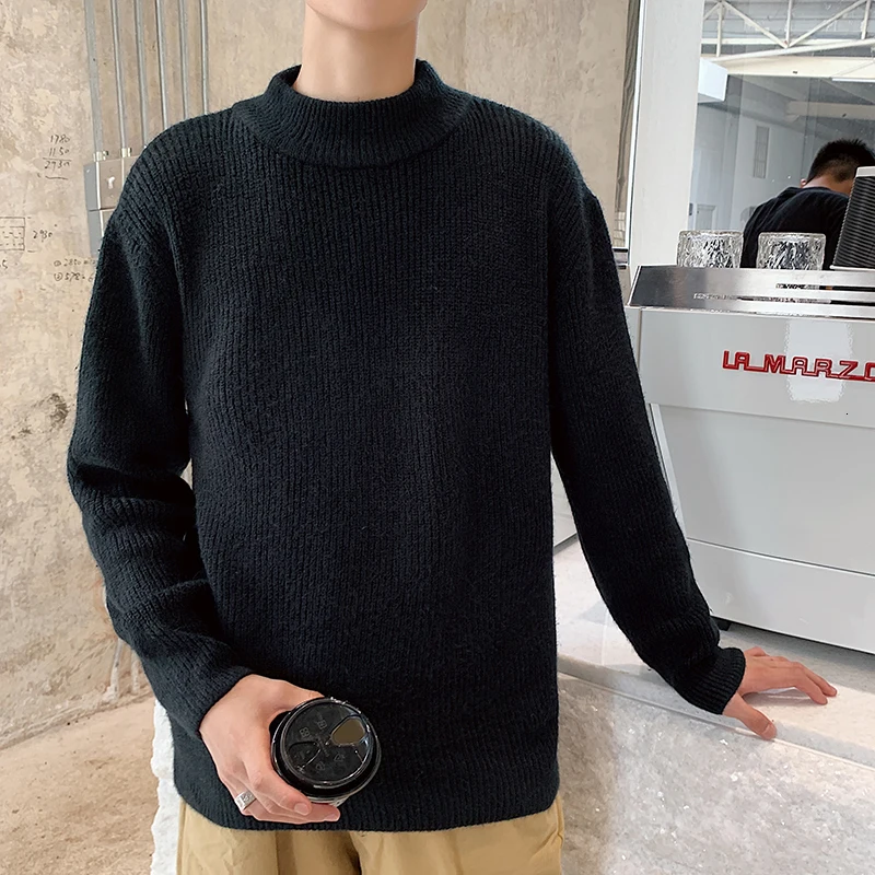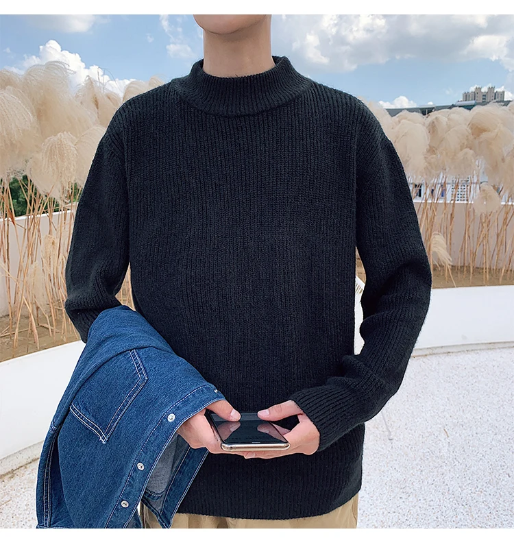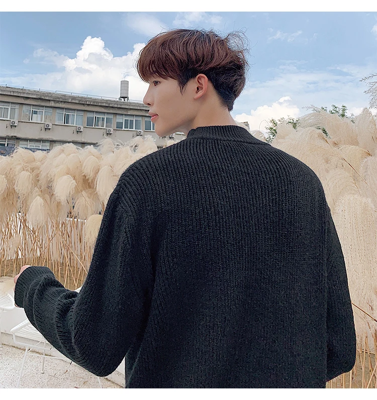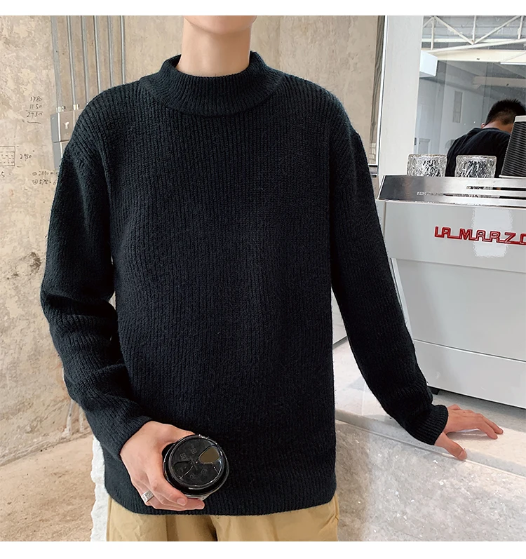 Зимний новый свитер мужской теплый модный однотонный повседневный мужской пуловер с круглым вырезом свободный свитер с длинными рукавами Мужская одежда M-2XL