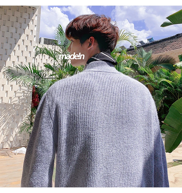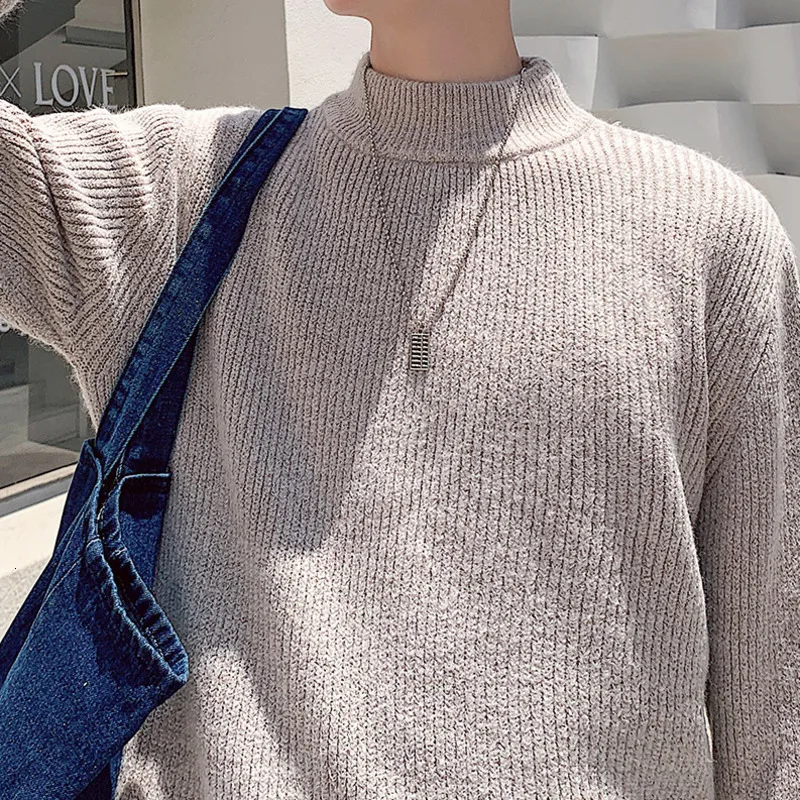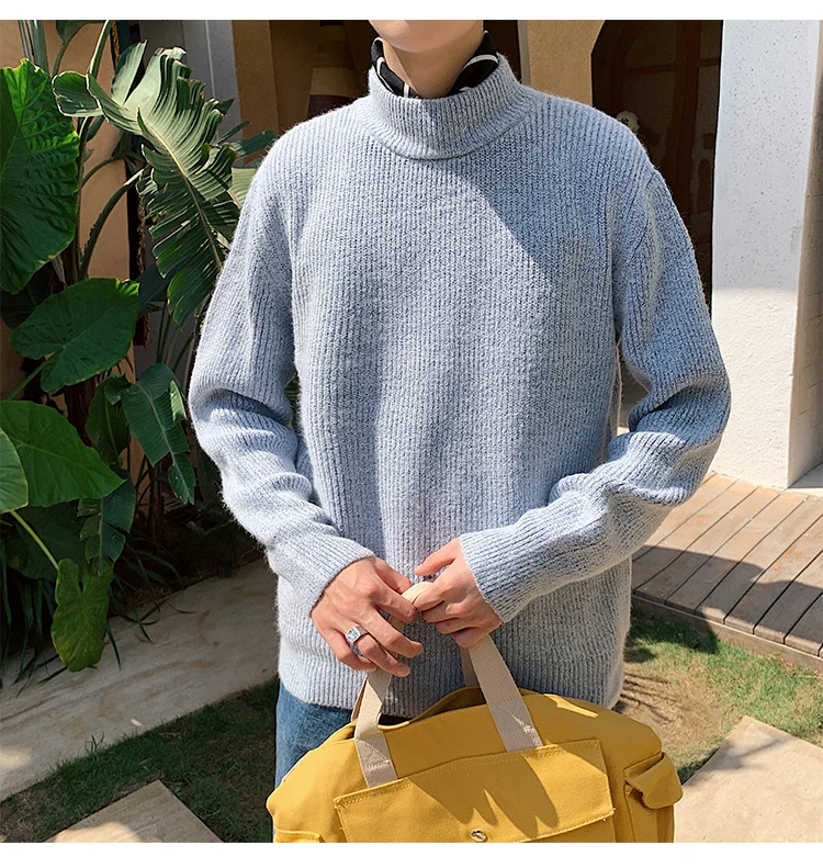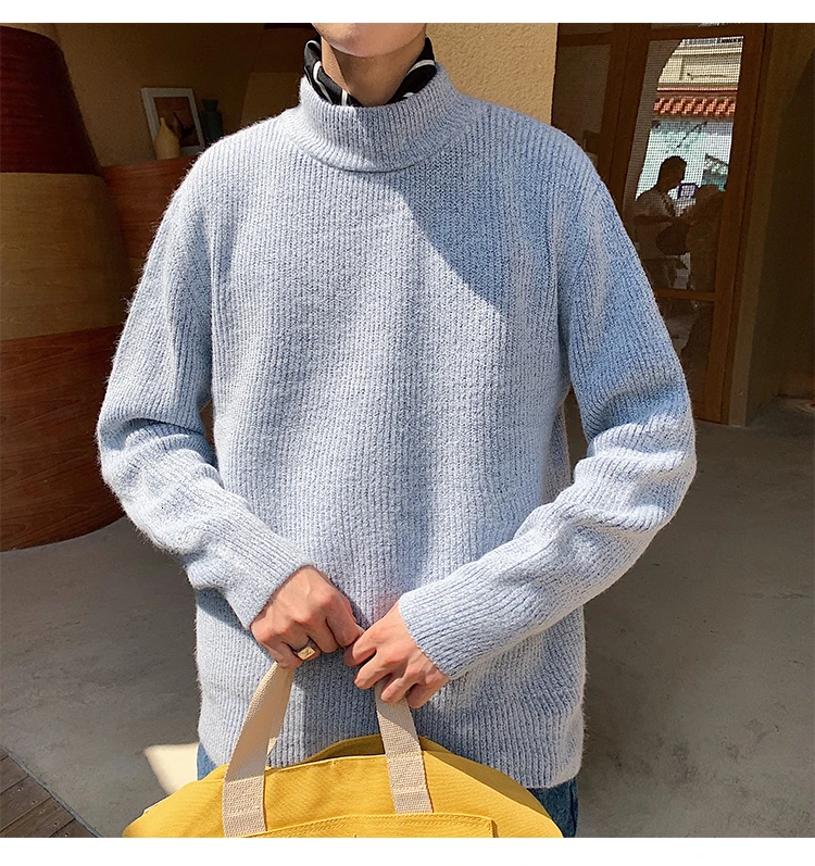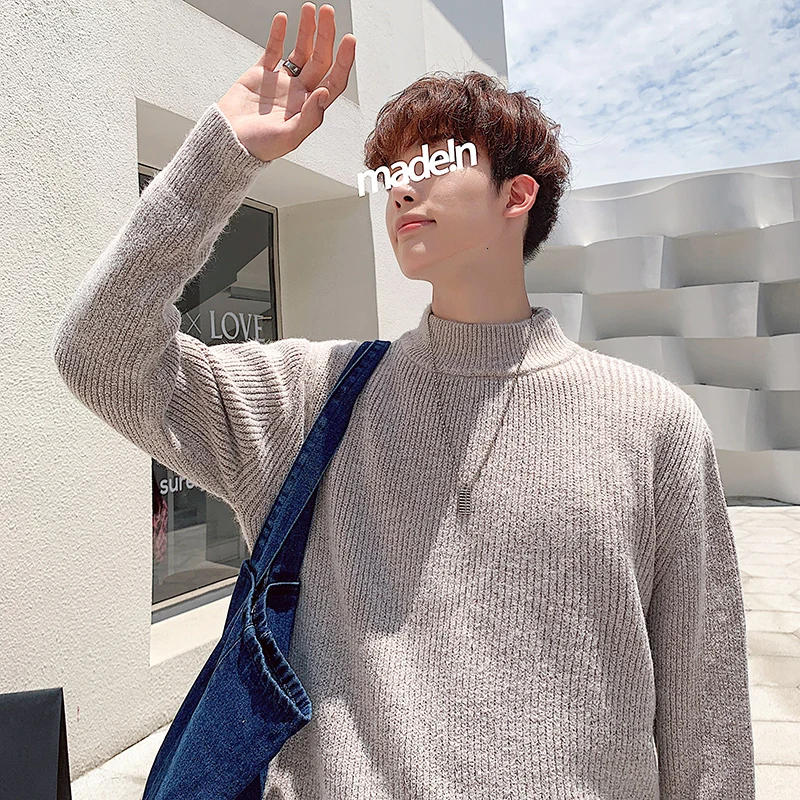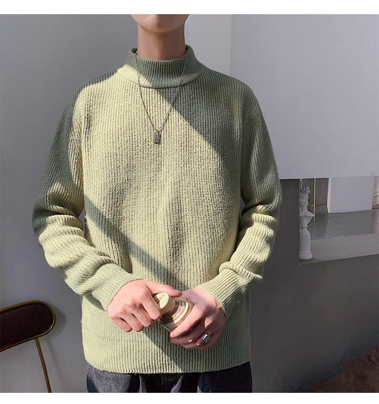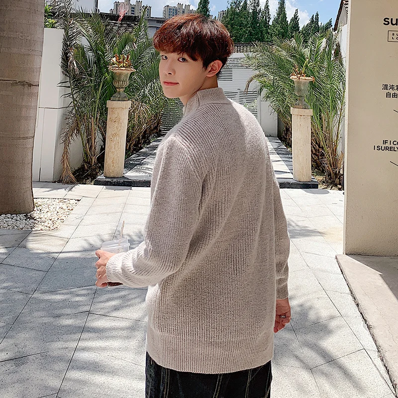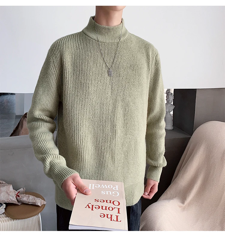 Зимний новый свитер мужской теплый модный однотонный повседневный мужской пуловер с круглым вырезом свободный свитер с длинными рукавами Мужская одежда M-2XL