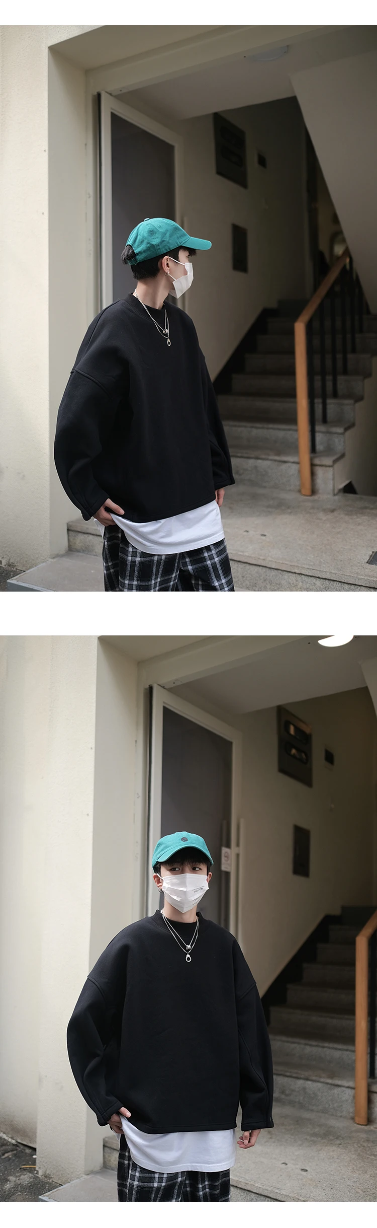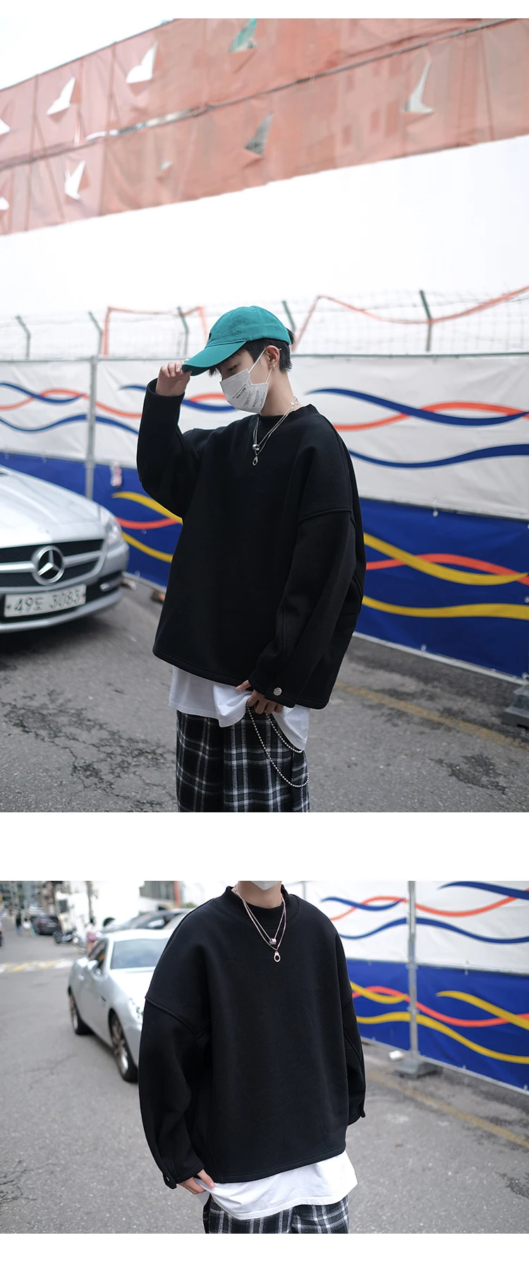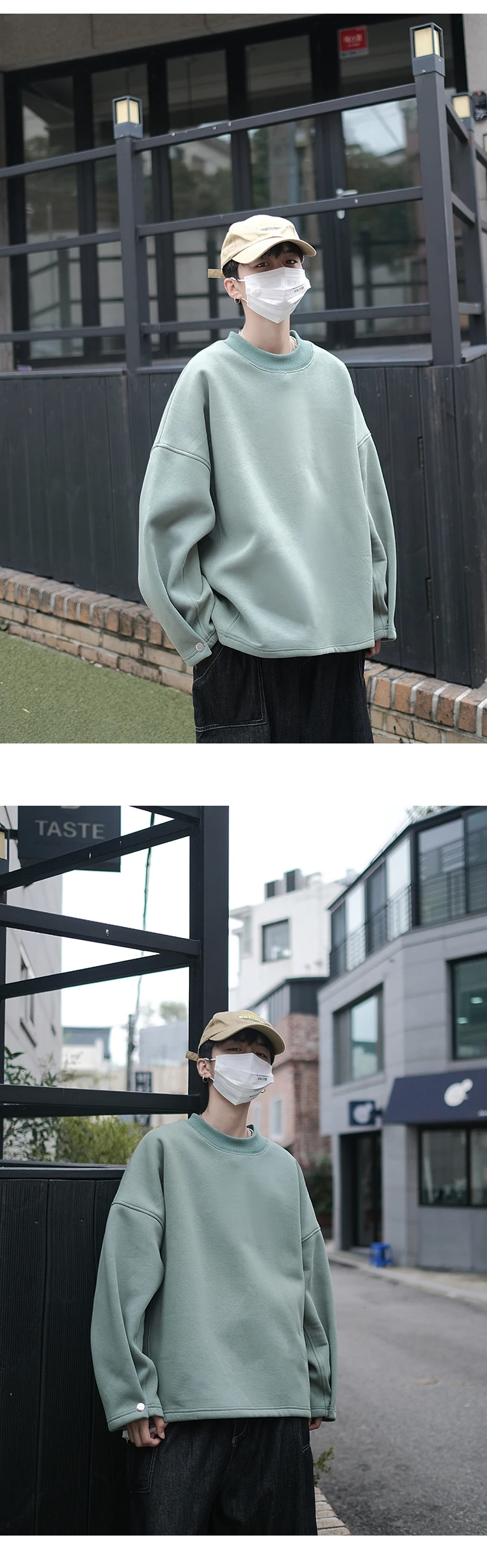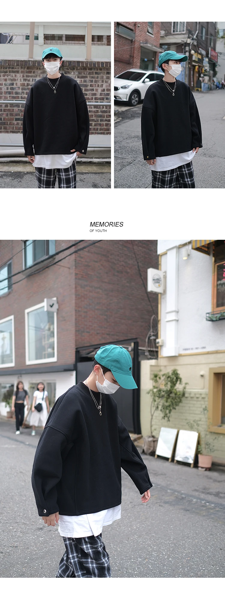 Осенние новые мужские хлопчатобумажные толстовки модные толстовки одноцветные повседневные толстовки с круглым вырезом мужские уличные свободные пуловеры мужские худи