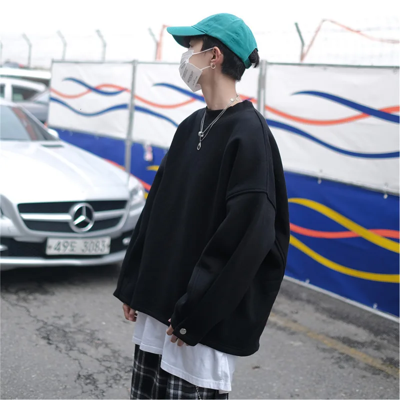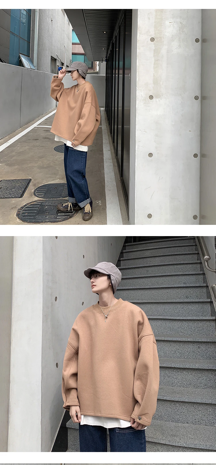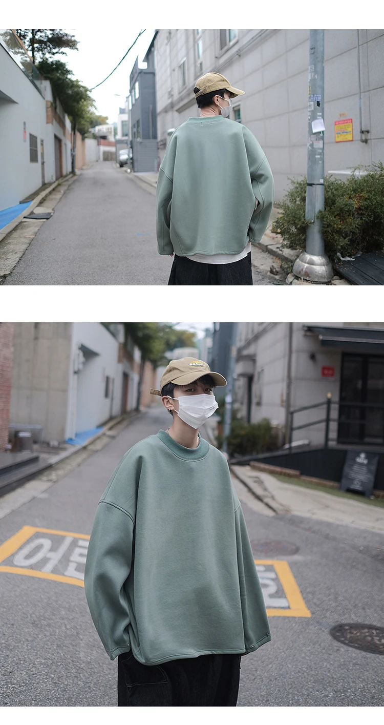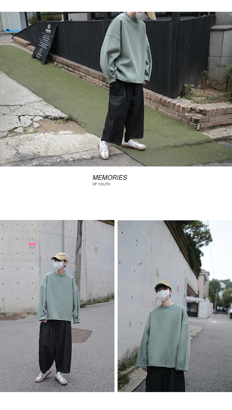 Осенние новые мужские хлопчатобумажные толстовки модные толстовки одноцветные повседневные толстовки с круглым вырезом мужские уличные свободные пуловеры мужские худи