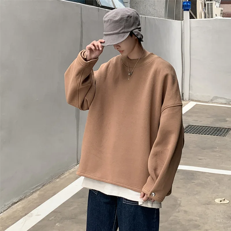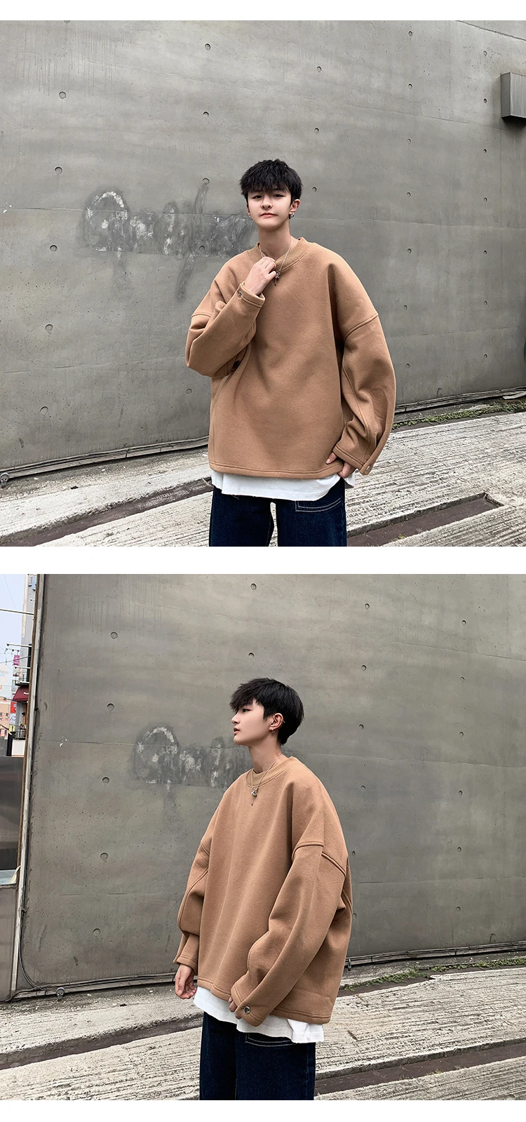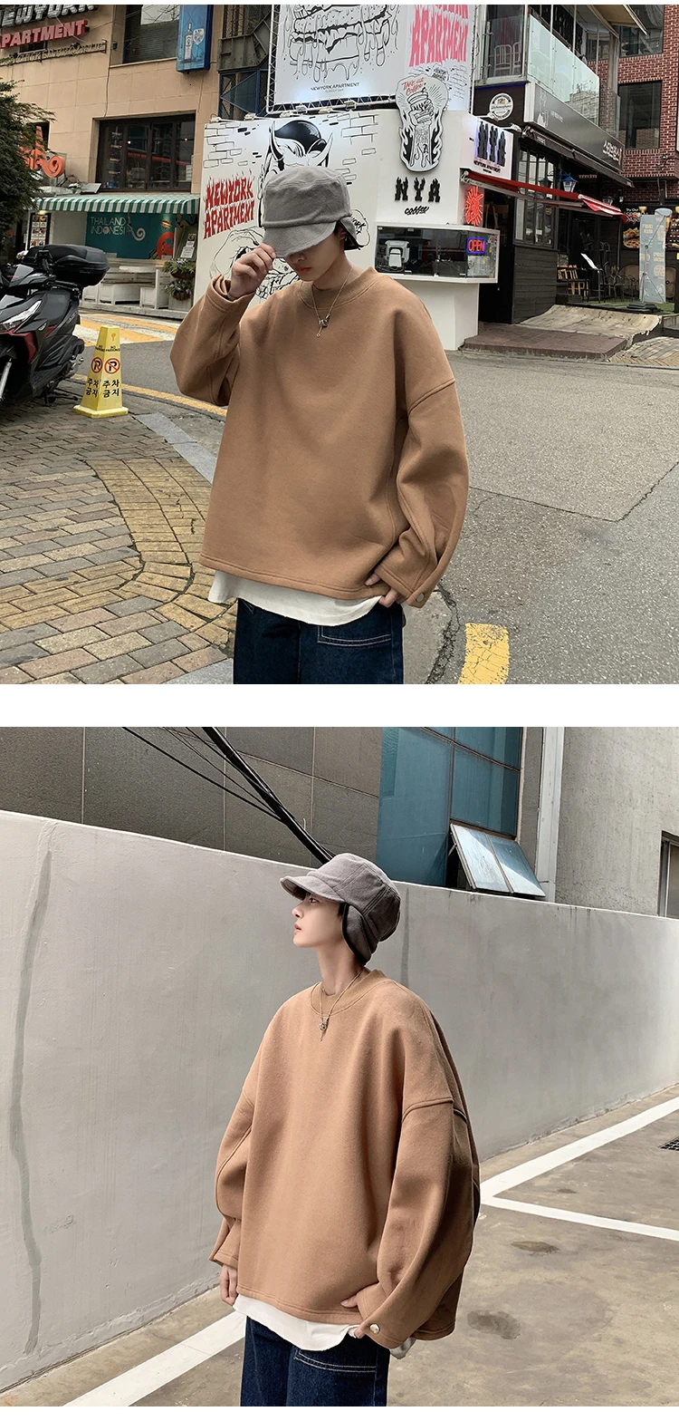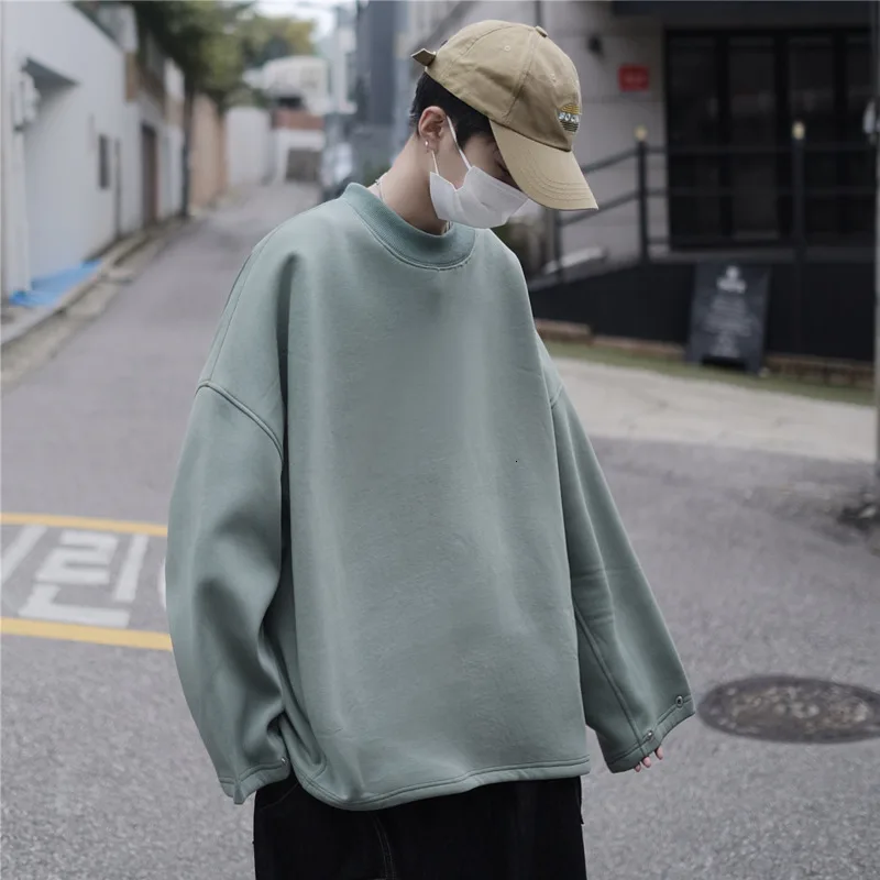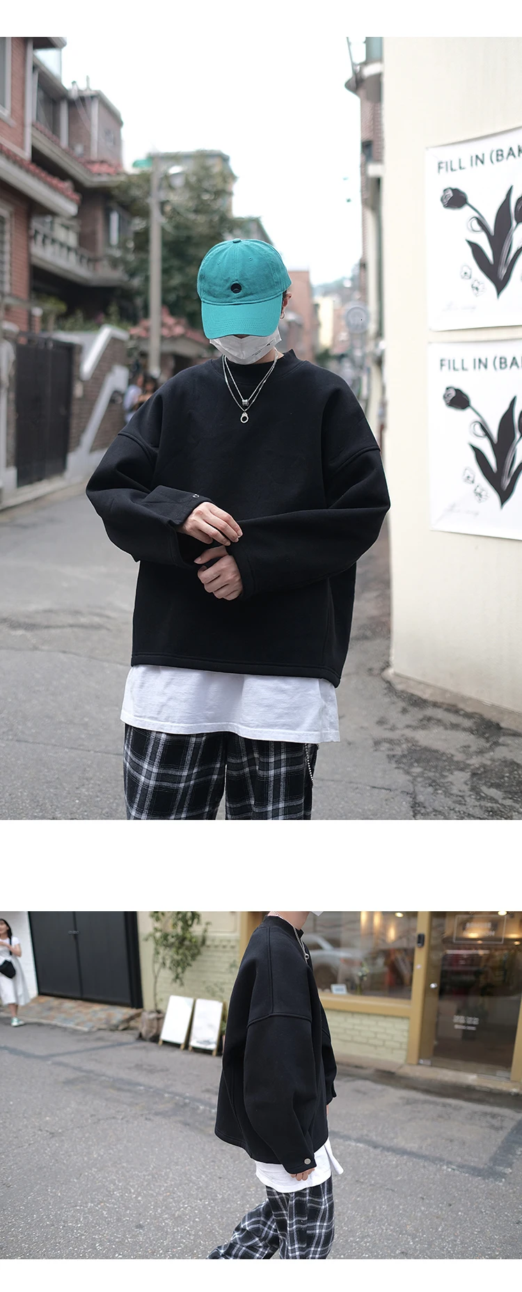 Осенние новые мужские хлопчатобумажные толстовки модные толстовки одноцветные повседневные толстовки с круглым вырезом мужские уличные свободные пуловеры мужские худи