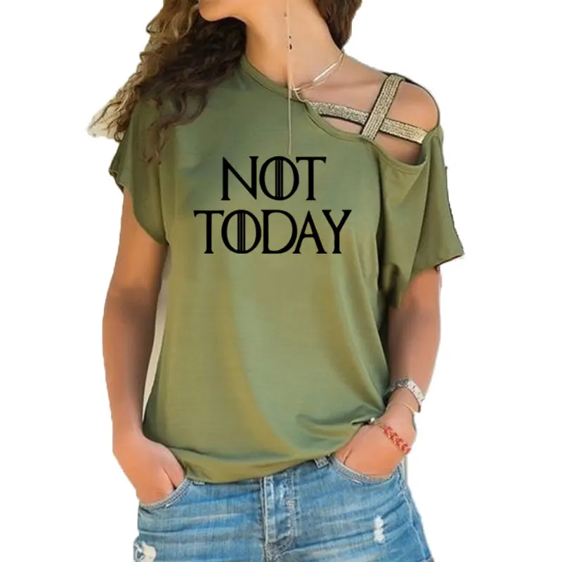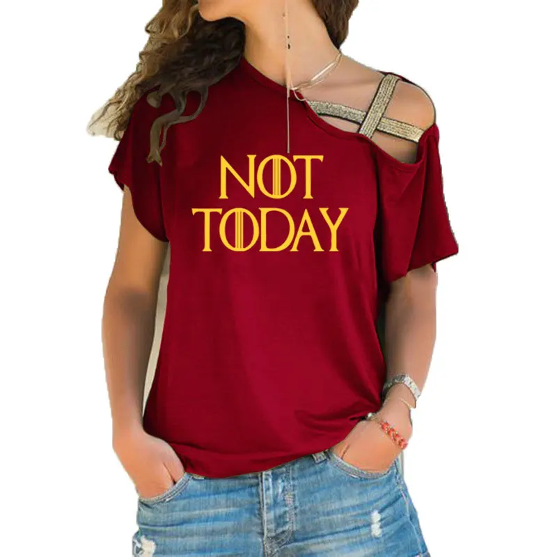 Женская футболка с принтом Not Today, летняя футболка с асимметричным перекрестным бандажом, женские топы