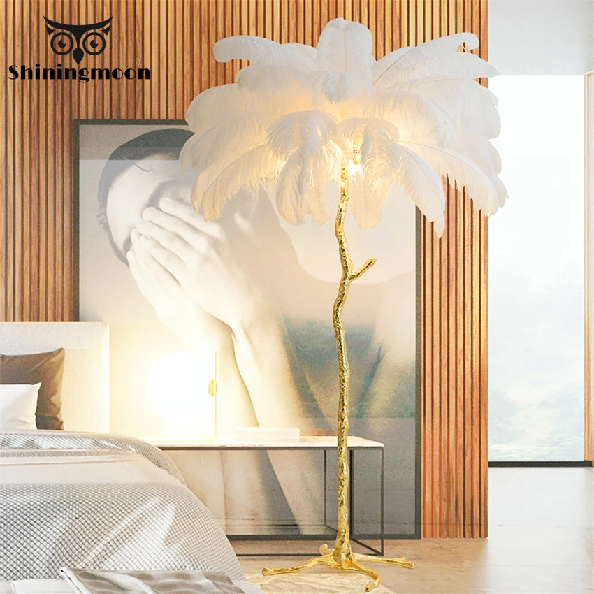 Современный роскошный торшер из страусиных перьев, медный, латунный...