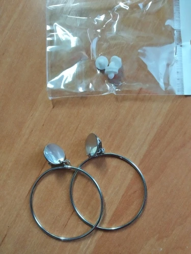 Продавец быстро отправил заказ и хорошо упаковал. Клипсы не тяжелые, в одной упаковке были 2 запасные резиновые держатели, но со вторыми сережками была лишь одна штучка. У резиновых держателей есть способность легко выпадать и теряться. На ушах вроде держаться хорошо, не давят, однако есть ощущение будто щас слетят, наверно с непривычки. Качество соответствует цене. Простые круглые клипсы в диаметре почти 5 см, другие где-то 6,5 см в длину.