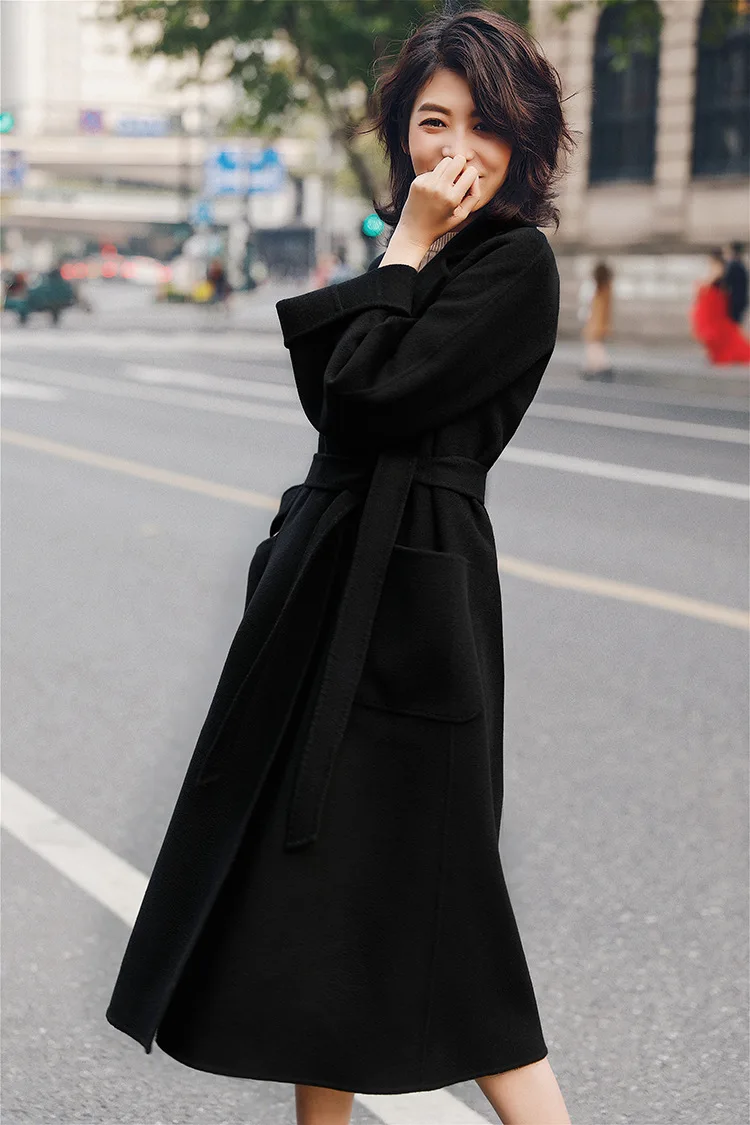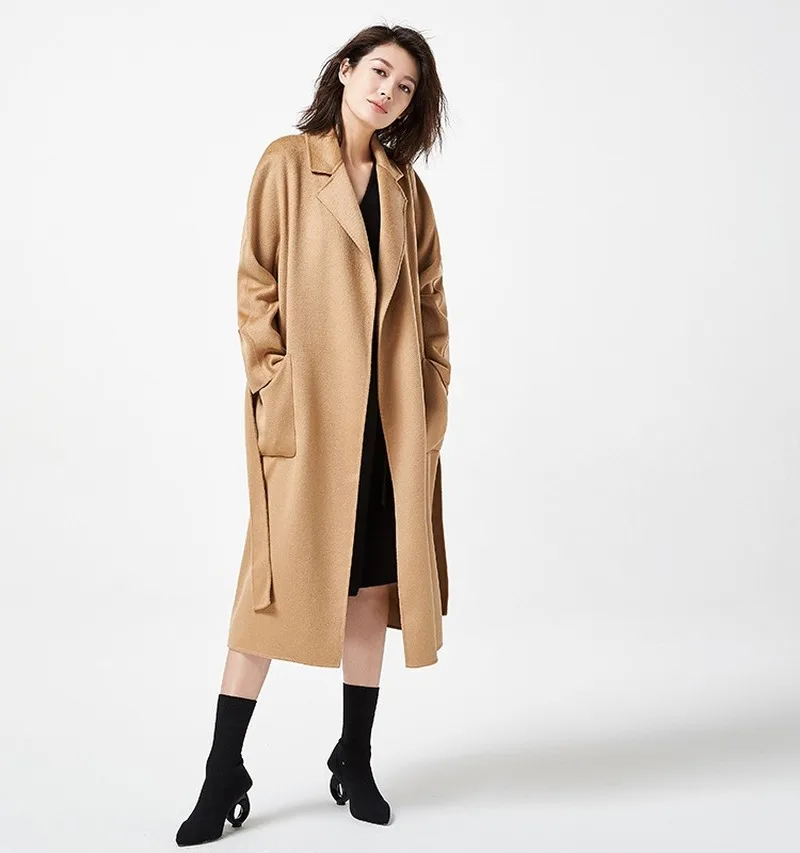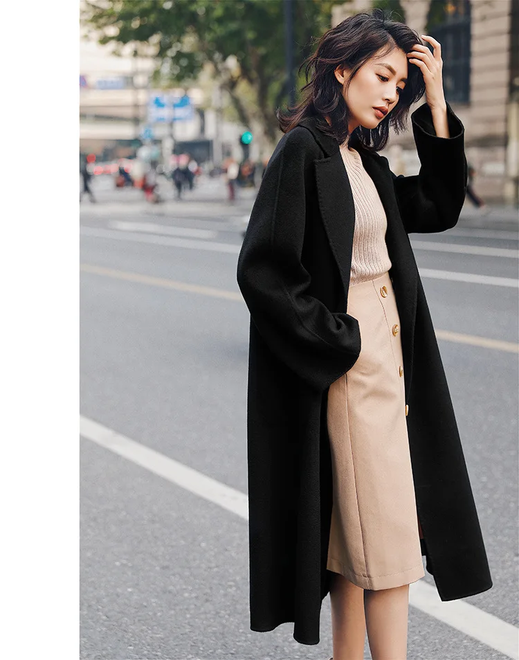 Классическое двустороннее Женское пальто AIGYPTOS, Кашемировое шерстяное пальто волнистое пальто, кашемировое пальто на зиму