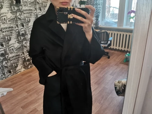 Пальто мне понравилось, если вы не ожидали что оно будет плотное и тёплое. Материал внешне слегка лоснится, тем самым имея очень интересный вид. На ощупь тонкое, но как ни странно, пальто отлично держит форму на теле. Сначала беспокоили высоко расположенные карманы прямо под поясом, но в итоге при такой высоте в них очень удобно засовывать руки) Пальто подходит для тёплой весны или осени. На мой рост 163см, параметры 87-68-97 размер S сел идеально. Рукава впритык, уже не подвернешь (у меня руки 59см)