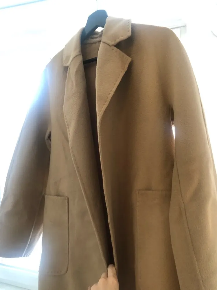 Пальто очень классное! Верю всем хорошим отзывам, остальным просто не повезло по какой-то ошибке. Продавец быстро отвечал и советовал. хотя я все равно взяла на размер больше(М) и не пожалела. Упаковано классно, материал точно шерсть, довольно тёплое, но на осень. Зимой планирую носить с пуховиком нижним слоем. Отдельное спасибо продавцу за щёточку в подарок. Очень её хотела, но не заказала. Love love love