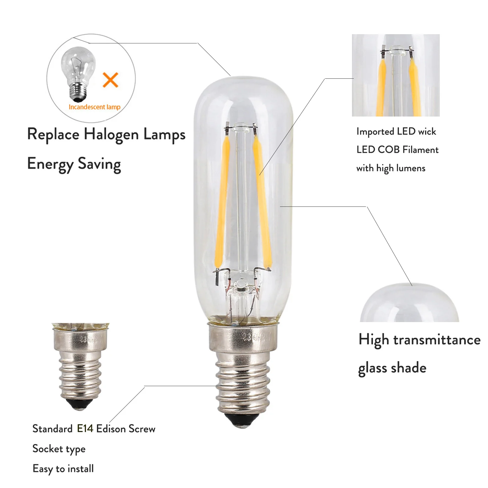 Винтажный трубчатый светодиодный светильник, 2 Вт, T25, лампа накаливания, маленький Эдисон, E14, цоколь, теплый белый, 2700 к, 20 Вт, галогенный эквивалент