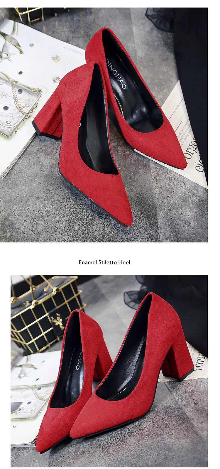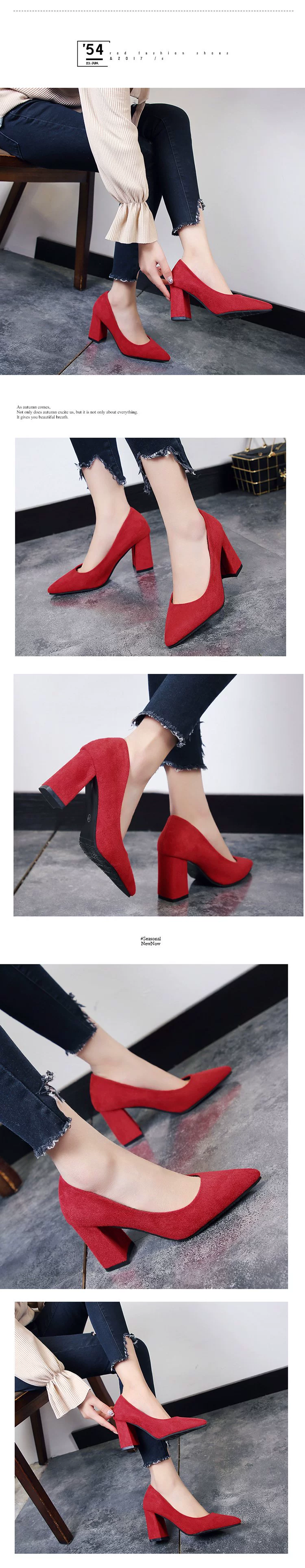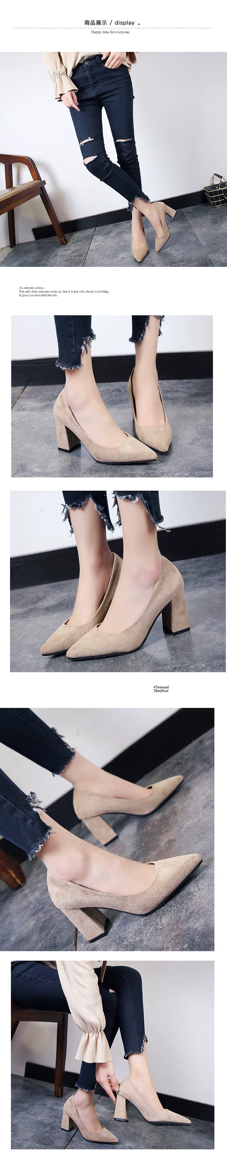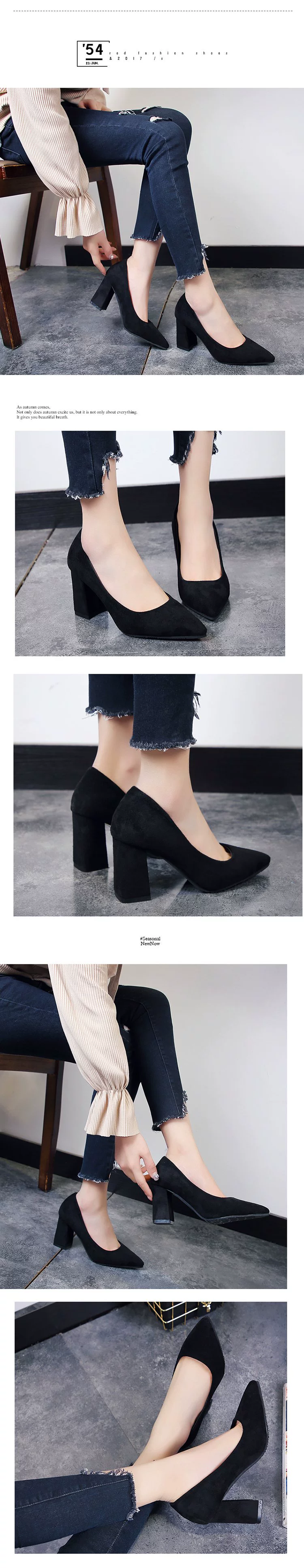 Туфли-лодочки женские замшевые, заостренный носок, квадратный каблук, заостренный носок, Элегантная удобная классическая обувь для работы, корейский стиль
