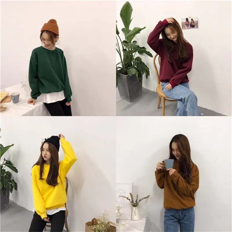 Осенне-зимняя однотонная женская Толстовка Harajuku с капюшоном и длинным рукавом, свободные женские толстовки, повседневный спортивный костюм, Прямая поставка