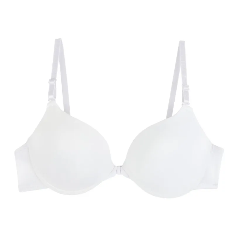Описание продукта: Материал: нейлон + спандекс + хлопок Тип Поддержки: на косточках Тип ремешков: отрегулированные-бретели, ремешки-трансформеры Вид застежки: застежка спереди Стиль: Повседневный Украшение: Нет Тип узора: Сплошной Форма чашки: три четверти (3/4 чашки) Стиль бюстгальтера: пуш-ап, бесшовный, мягкий