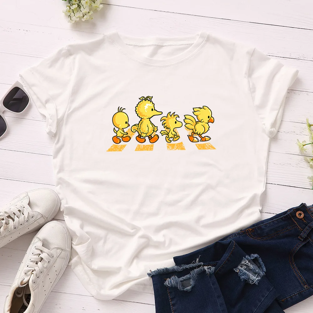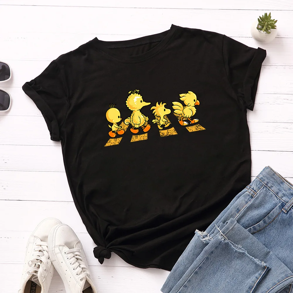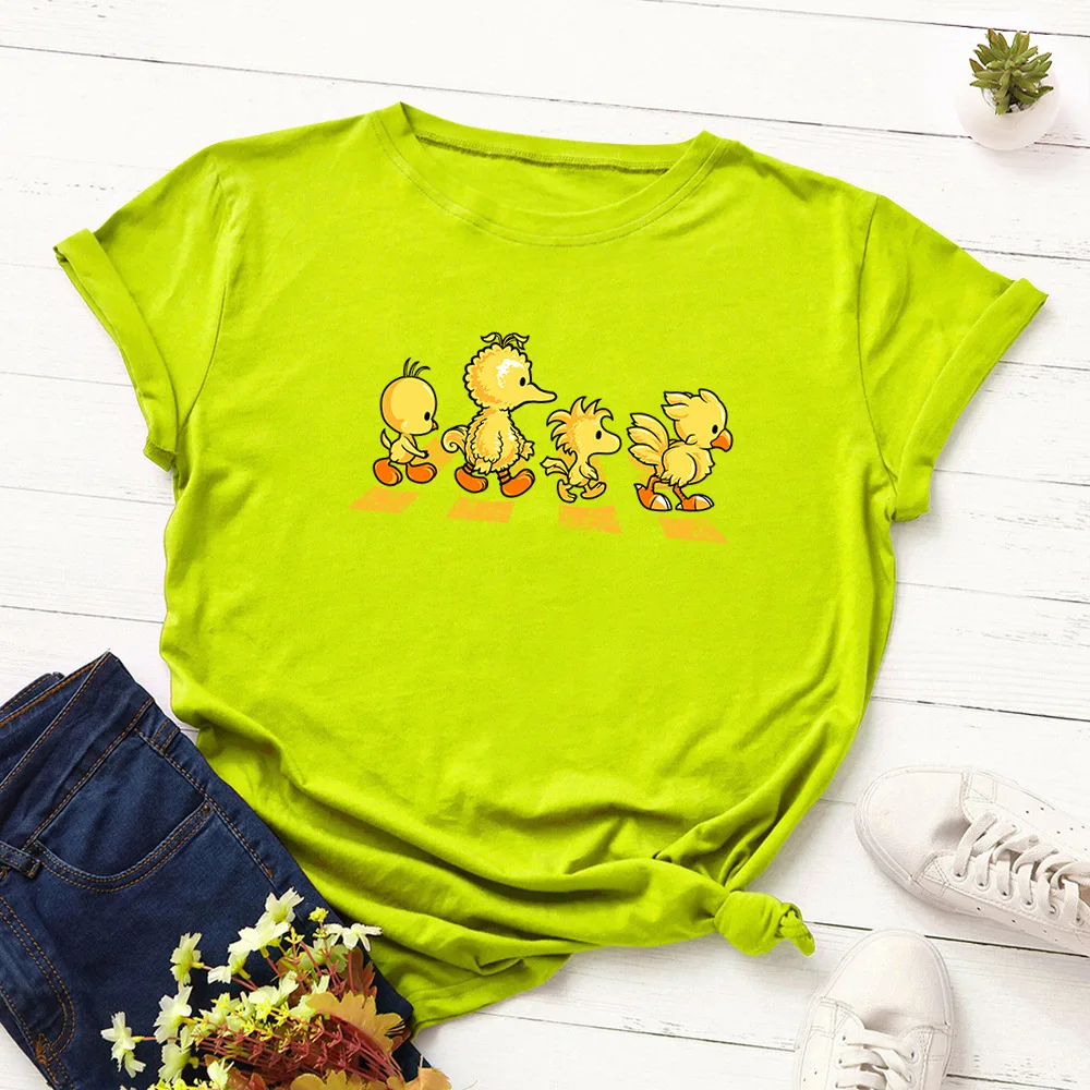 Летняя Желтая Женская футболка с принтом утки, однотонная женская футболка с круглым вырезом, повседневные Топы Harajuku, футболка для девочек, Camiseta Mujer