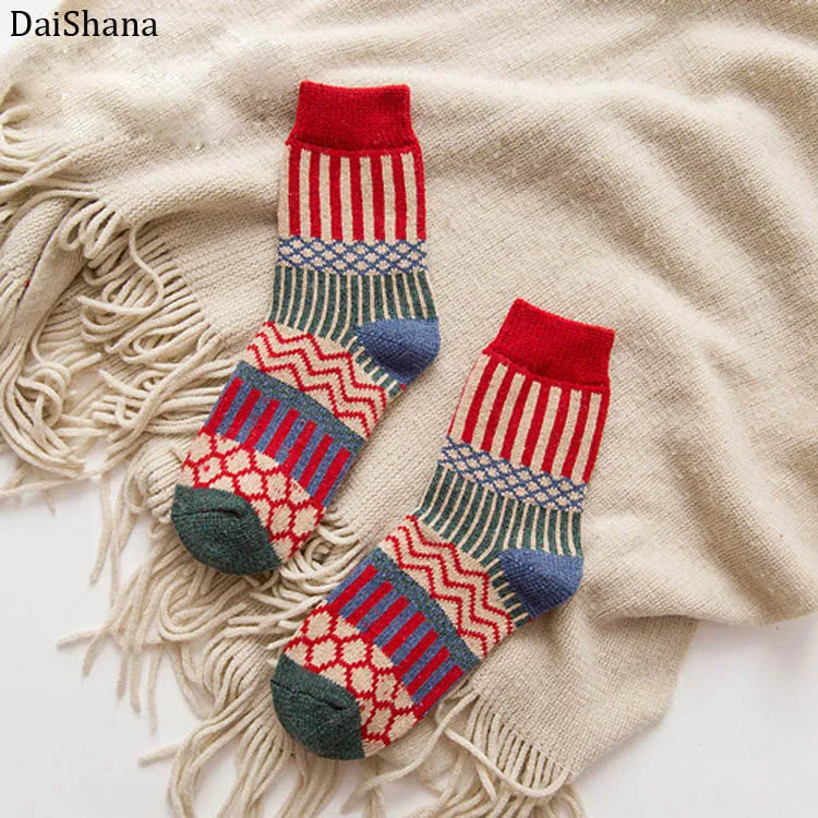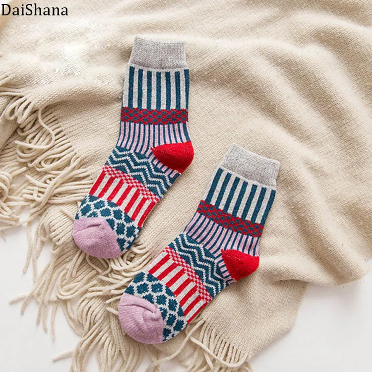 DaiShana 2019 новые зимние толстые теплые шерстяные женские носки красочные носки модные повседневные хлопковые носки с цветами в этническом стиле