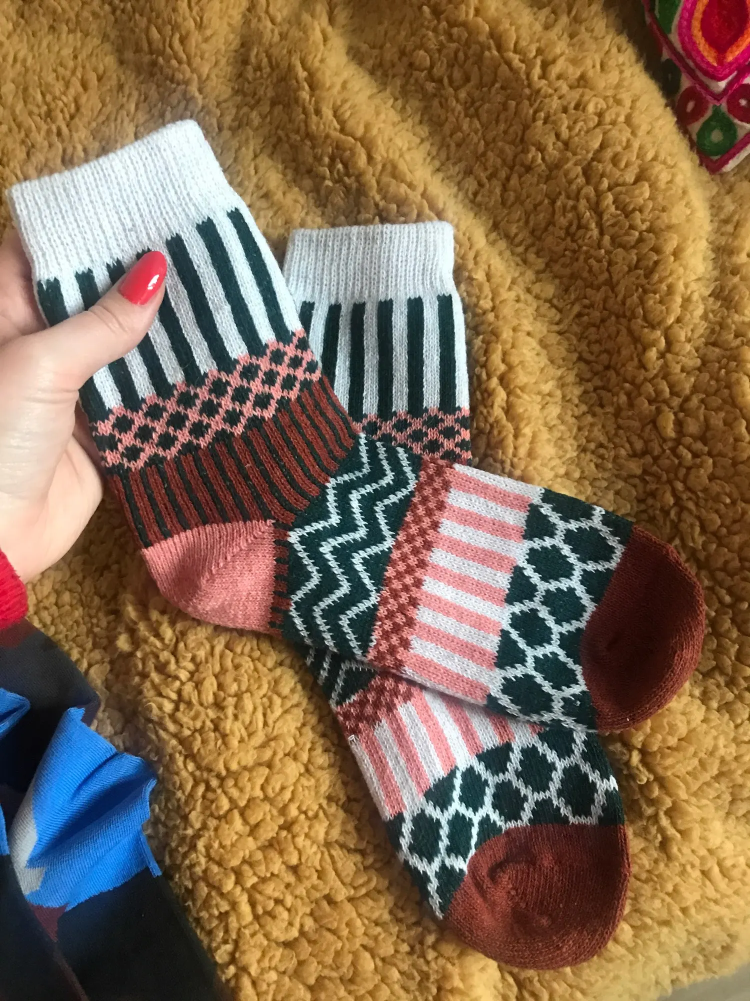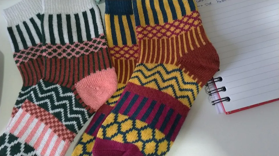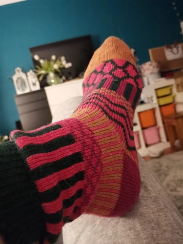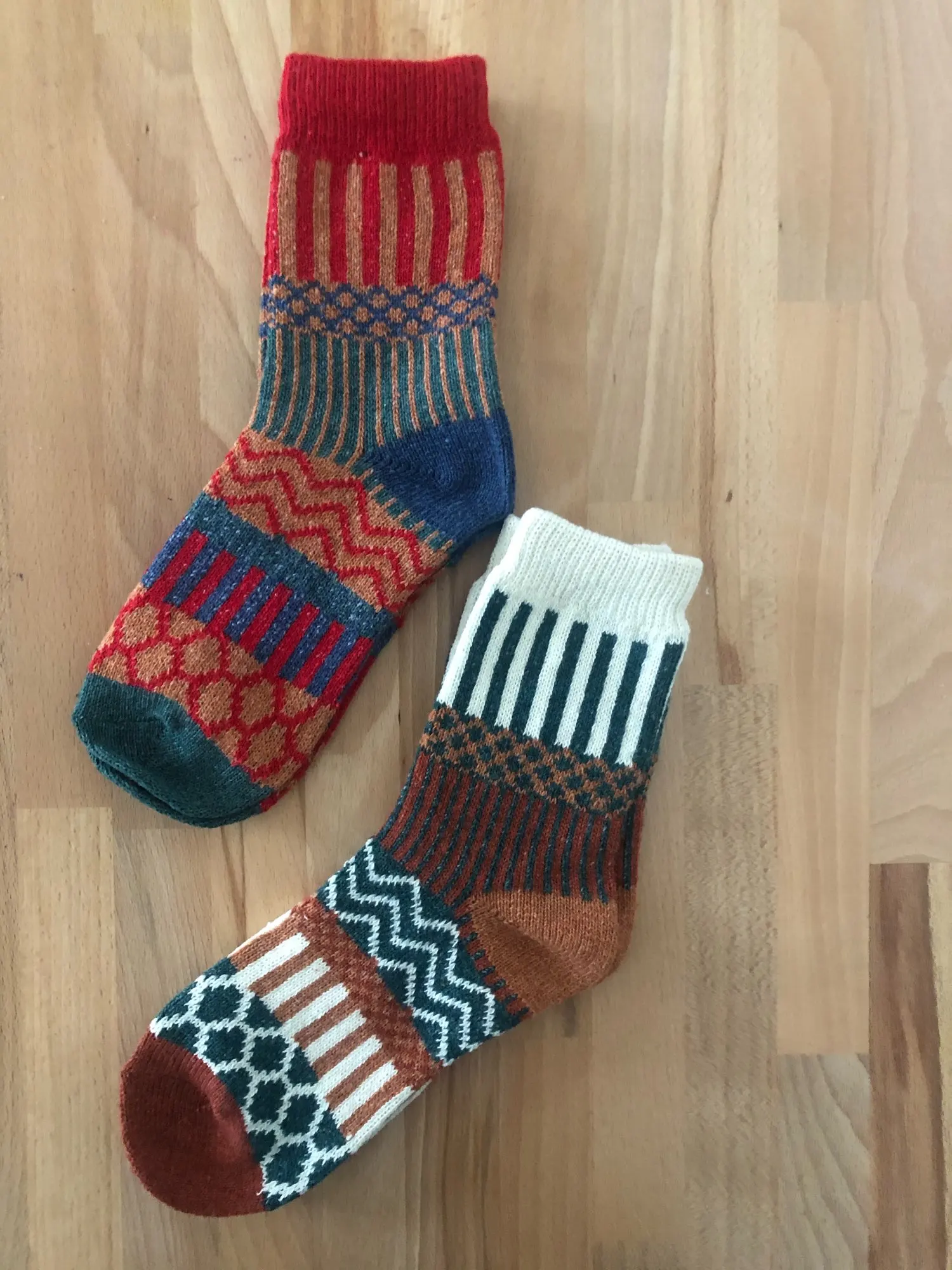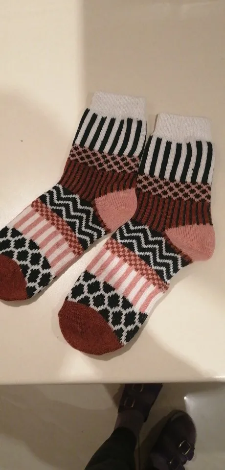 Носки оказались с иным составом, чем я ожидала. Шерсти в составе я не почувствовала, зимние синтетические носки. Ранее выписывала носки с таким же рисунком, были, действительно, из шерсти и очень теплые. Эти разочаровали.