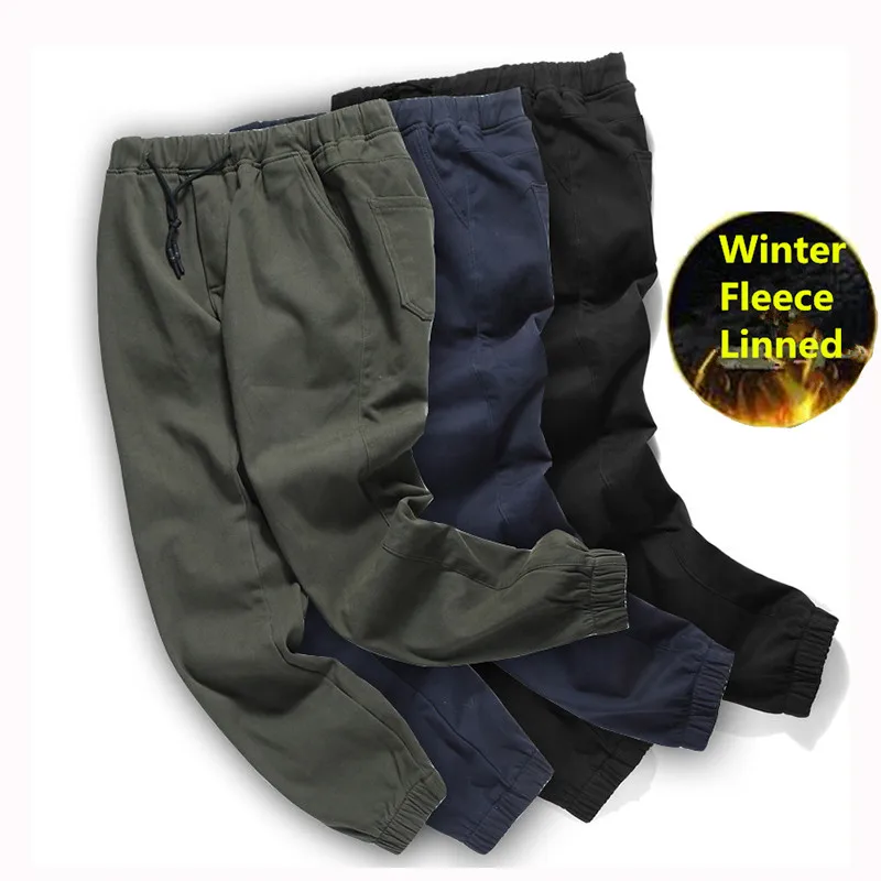 Мужские теплые брюки-карго SHIFUREN, повседневные хлопковые брюки полной длины из плотного флиса с эластичной талией, для зимы