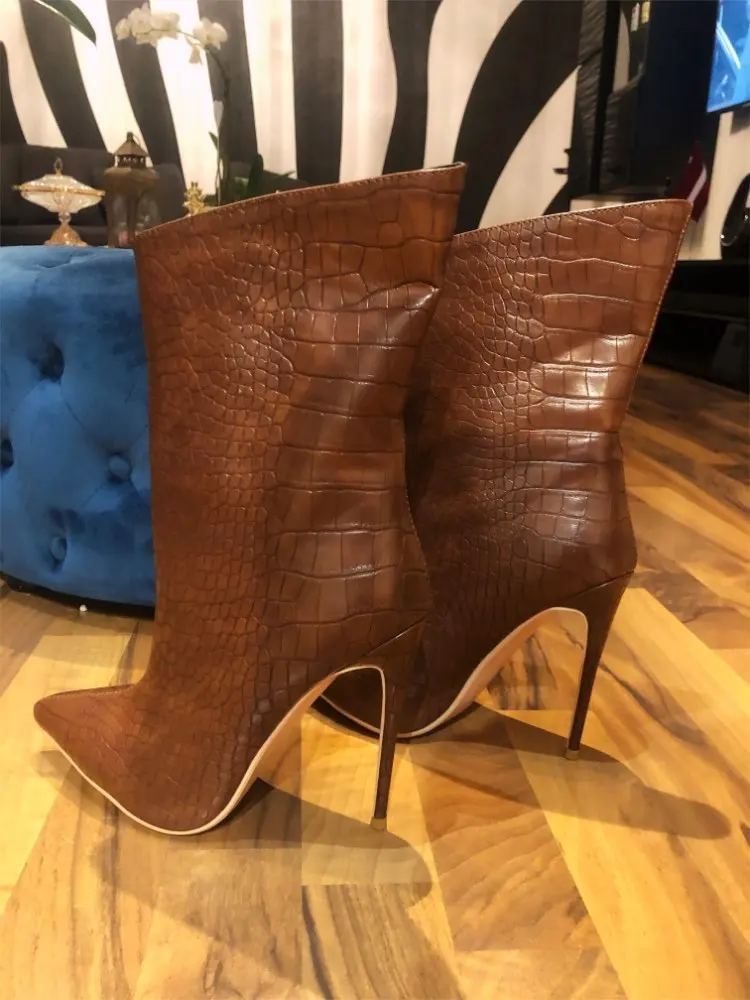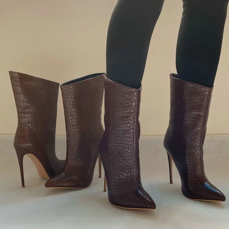 Женские ботильоны из искусственной кожи, на очень высоком каблуке, с острым носком