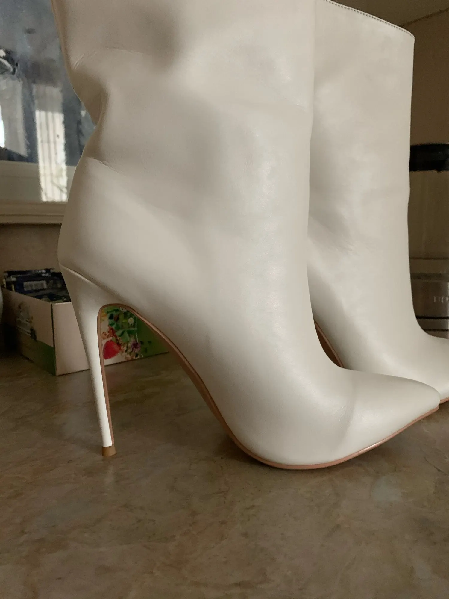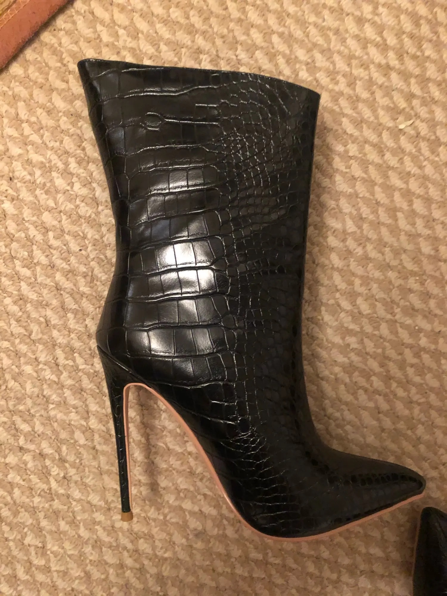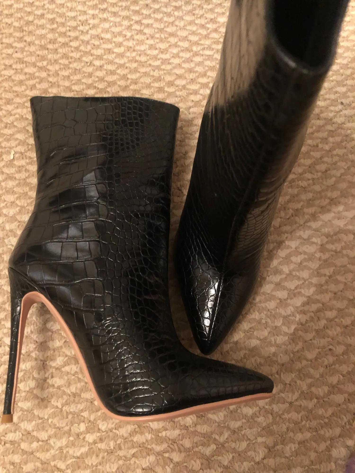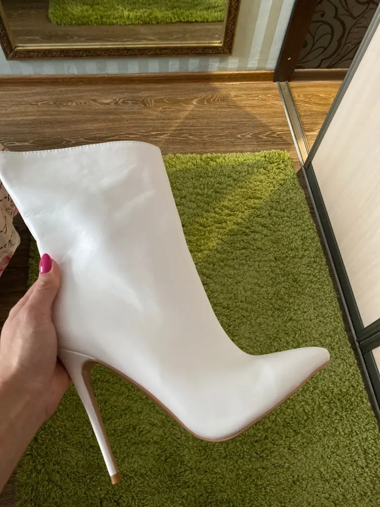 Ботильоны соответствуют фото и описанию .Невероятно красивые ,качество превзошло все ожидания ,идеальные очень похожи на натуральную кожу без брака и следов клея .Высота каблука 12см ,взяла 39 размер по стельке 24,5 см .Продавец отравил быстро , доставка в Украину 3 недели,продавец порядочный .Рекомендую !!! ...закажу еще черные