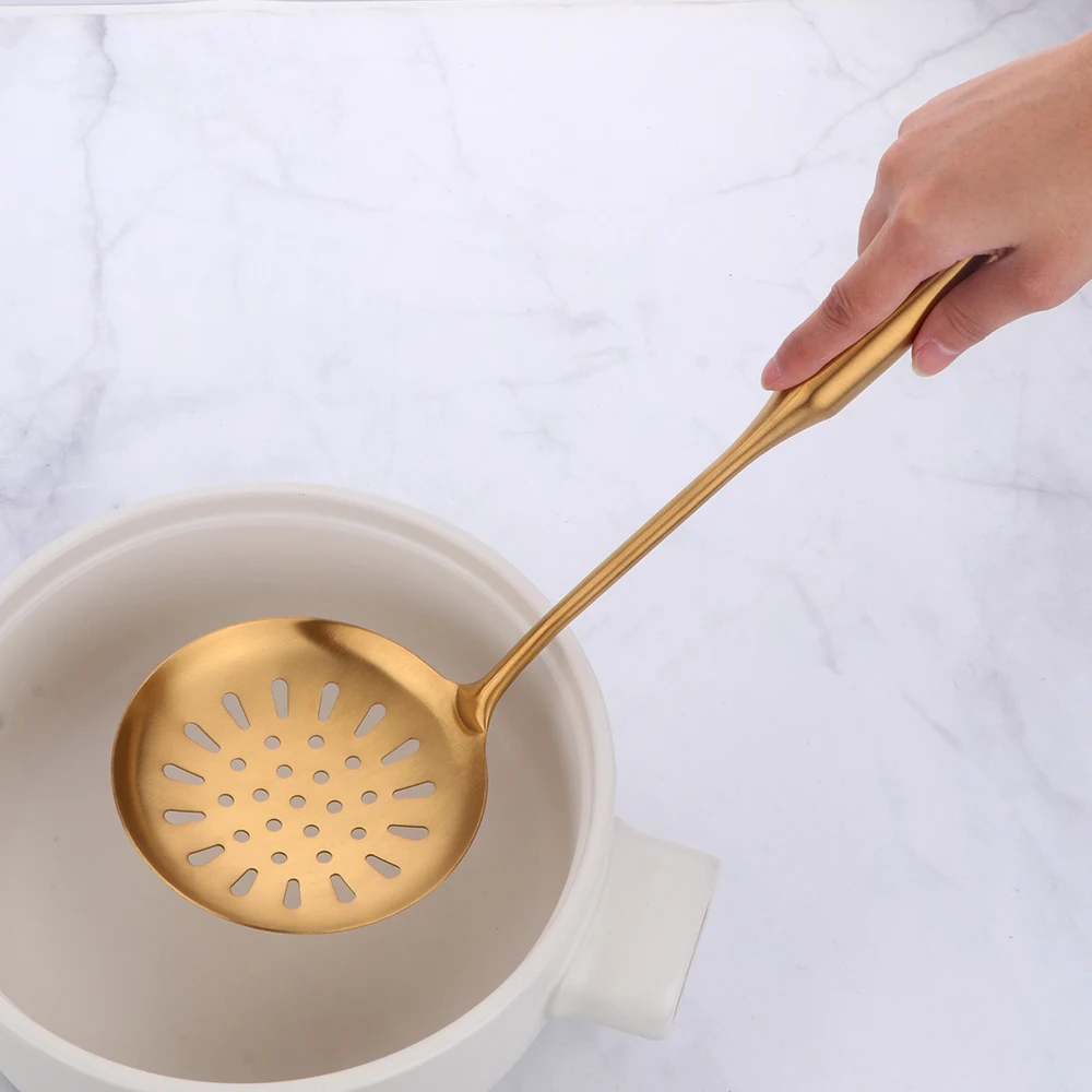 1 шт. золотые инструменты для приготовления пищи из нержавеющей стали с нескользящей ручкой, набор кухонной утвари, ковш, ложка для дома принадлежности для ресторанов