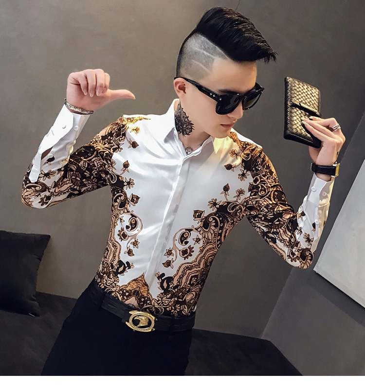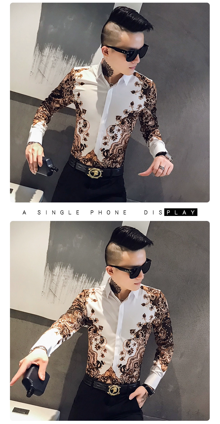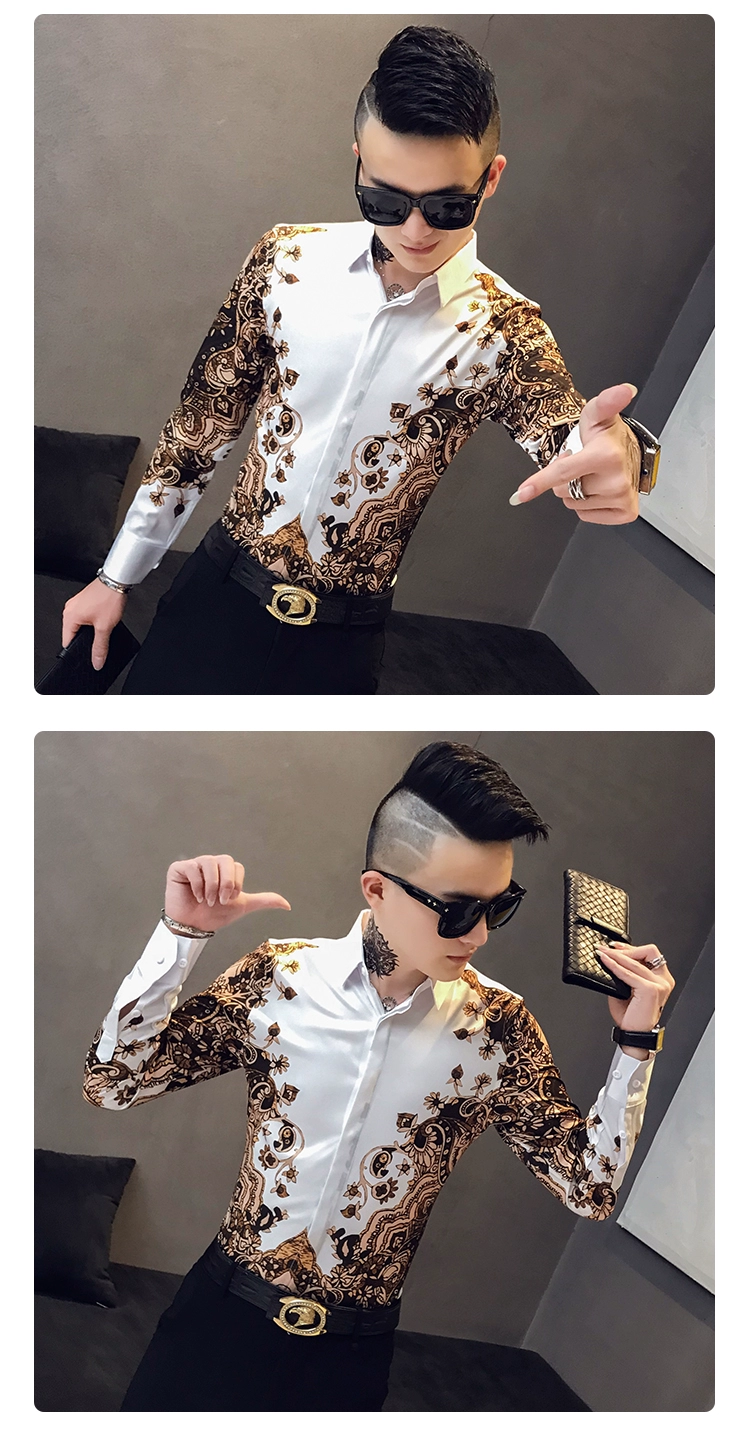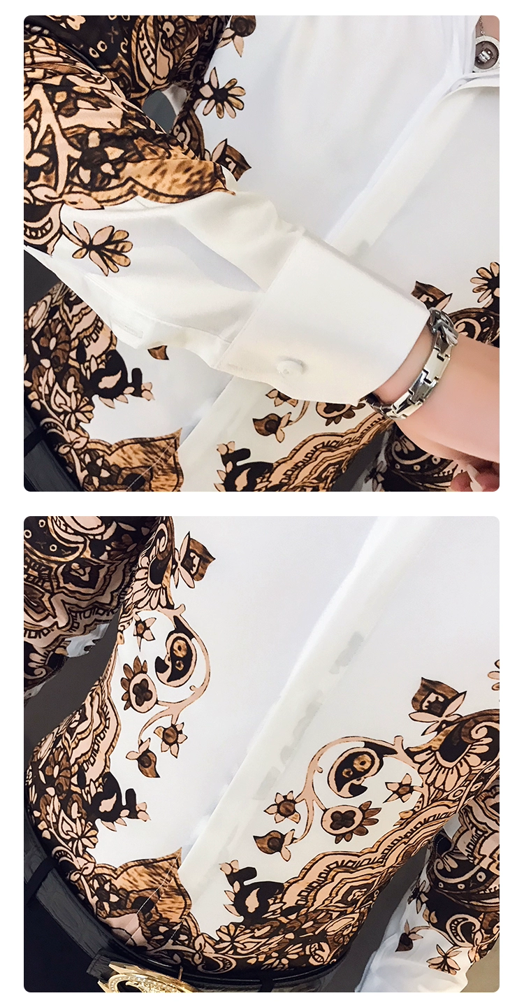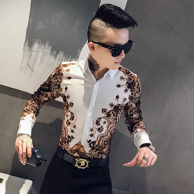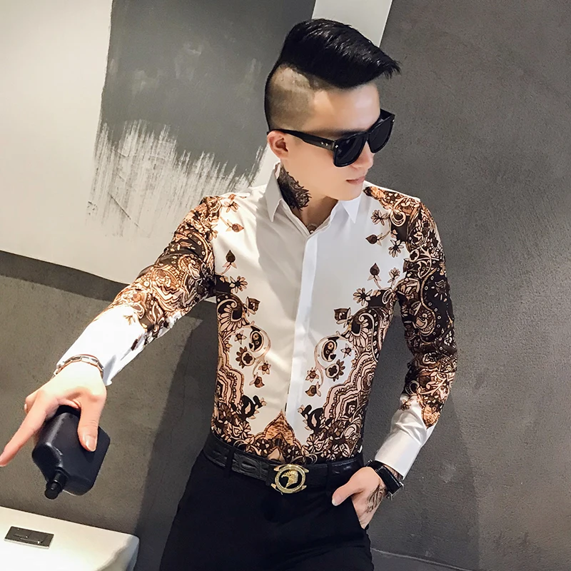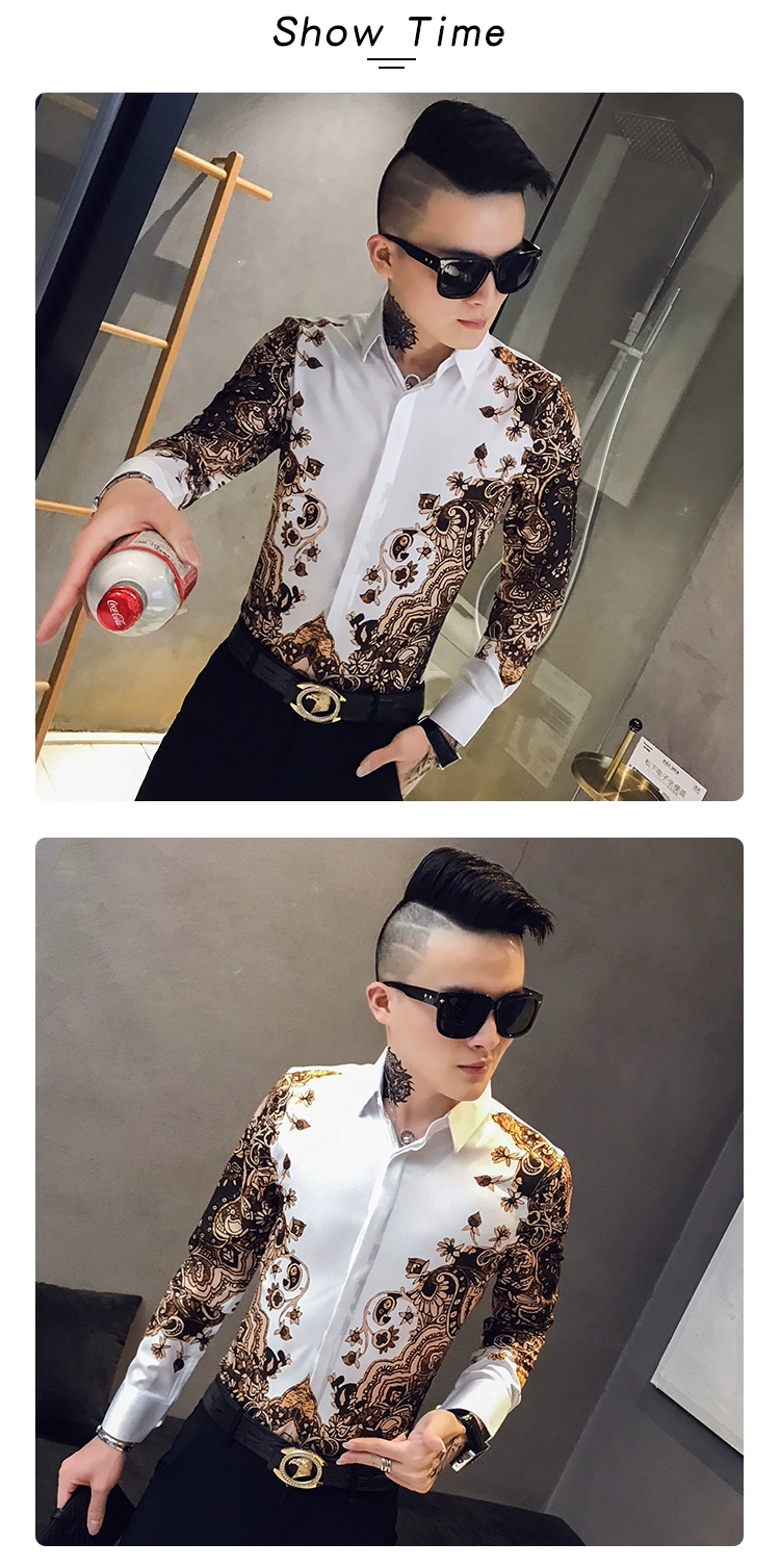 Модная брендовая мужская приталенная рубашка с принтом и длинным рукавом в стиле барокко вечерние Мужская Клубная одежда, роскошная королевская мужская рубашка-смокинг