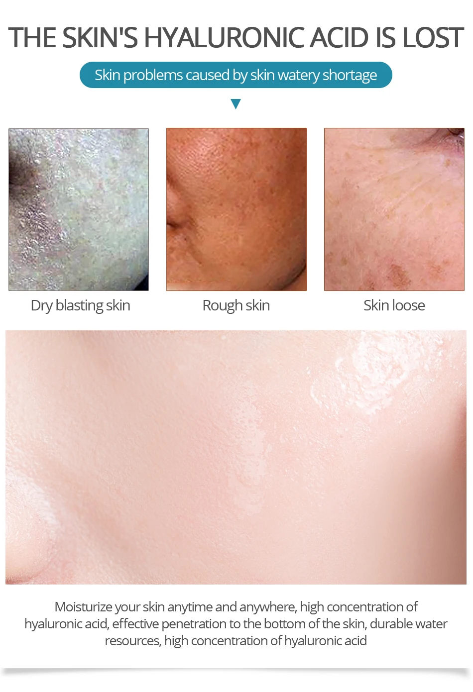Проблемы с кожей, вызванные нехваткой воды☞Сухая струйная кожа☞Грубая кожа☞Кожа свободнаяУвлажняет кожу в любое время и в любом месте, высокая концентрация гиалуроновой кислоты, эффективное проникновение на дно кожи, прочные водные ресурсы, высокая концентрация гиалуроновой кислоты