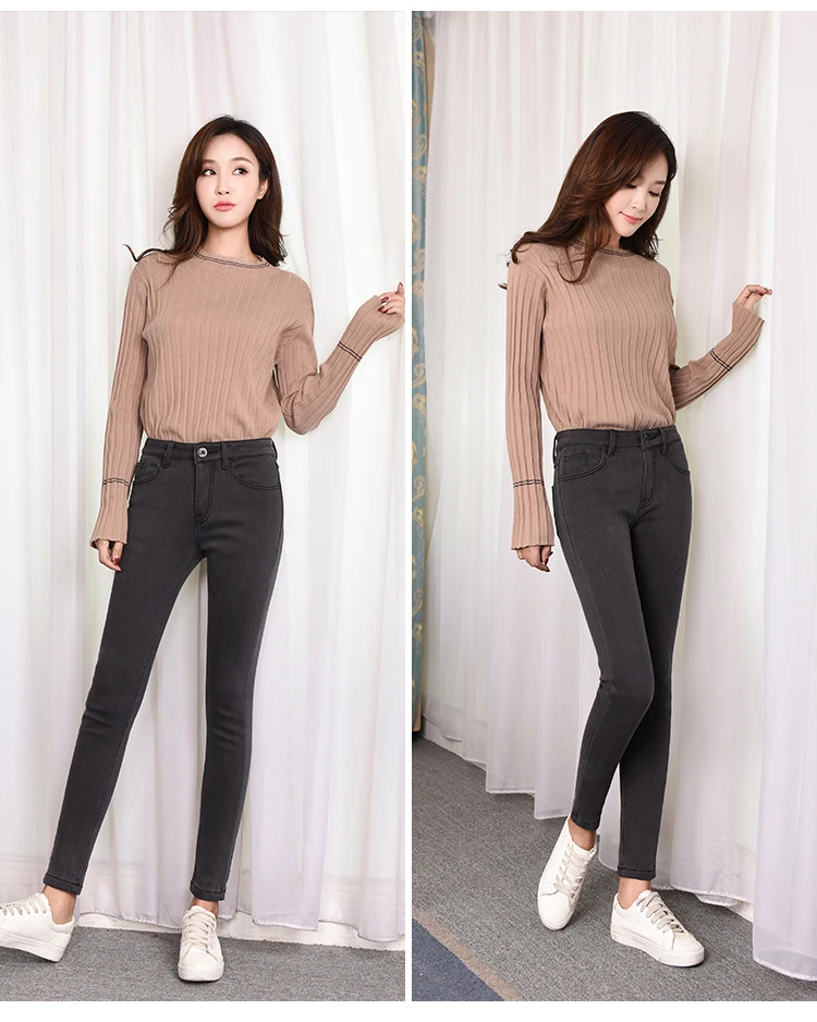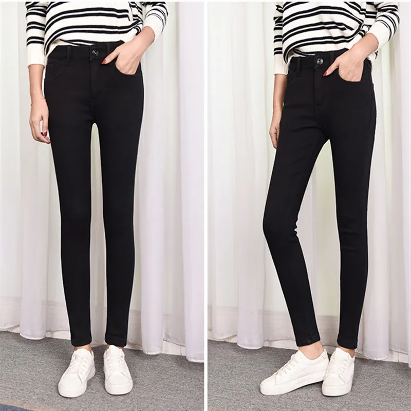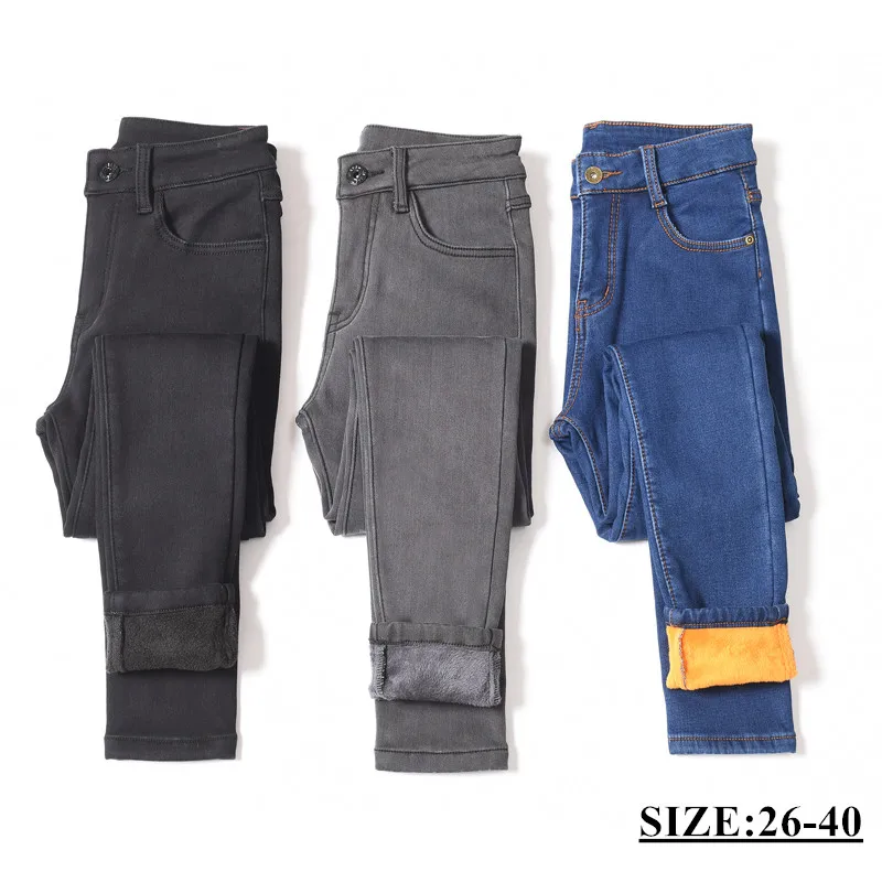 Джинсы женские зимние большого размера 40, теплые бархатные плотные обтягивающие джинсы с высокой талией, женские штаны-карандаш стрейч из денима