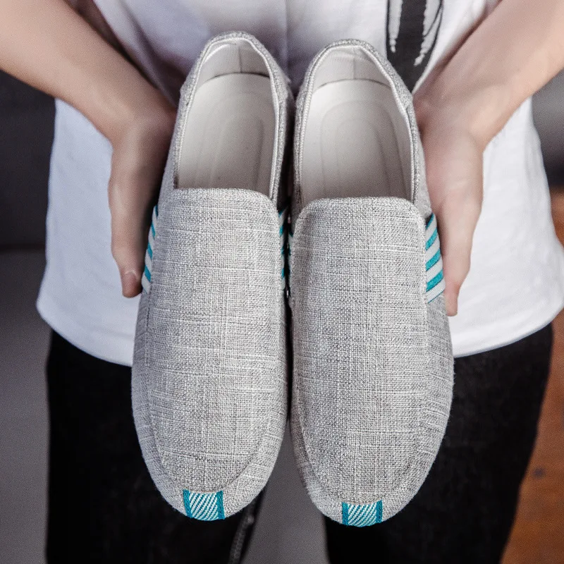 Мужские парусиновые лоферы, Повседневные Дышащие туфли на плоской п...