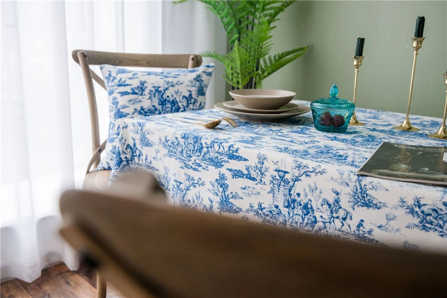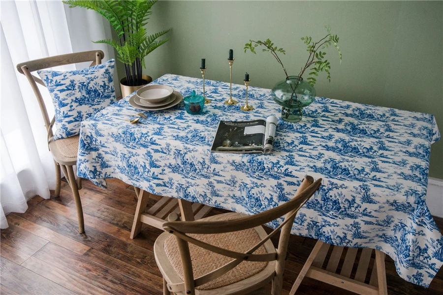 Декоративная скатерть в стиле ретро, синяя прямоугольная скатерть для обеденного стола, покрытие для кухонного стола, наволочка для домашнего декора