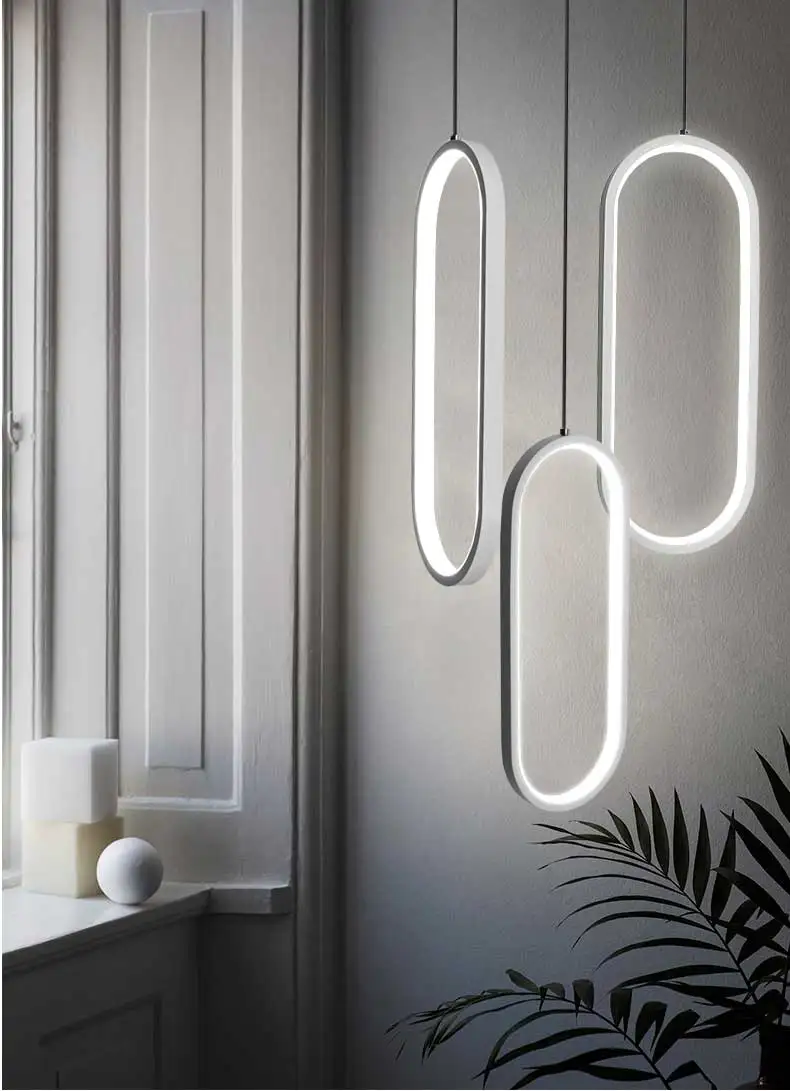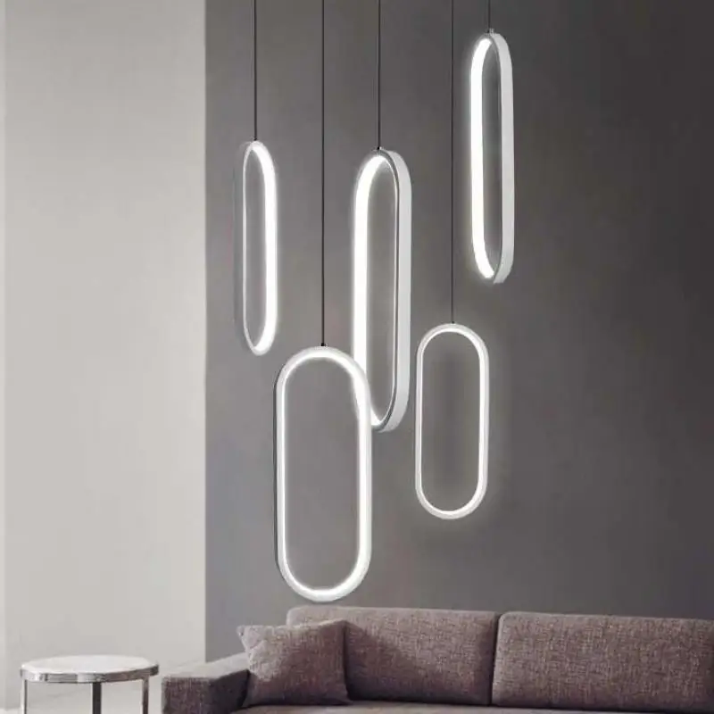 Современные овальные алюминиевые подвесные светильники для ресторана, кухни, столовой, бара, светодиодные подвесные светильники, пульт дистанционного управления с регулируемой яркостью