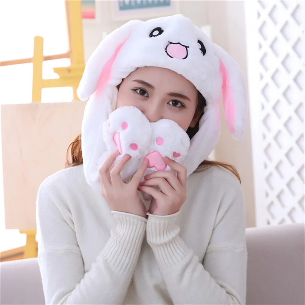 Кролик шапка движущиеся уши Милая мультяшная игрушка шапка подушка безопасности кавайная смешная детская плюшевая игрушка подарок на день рождения шапка для девочек