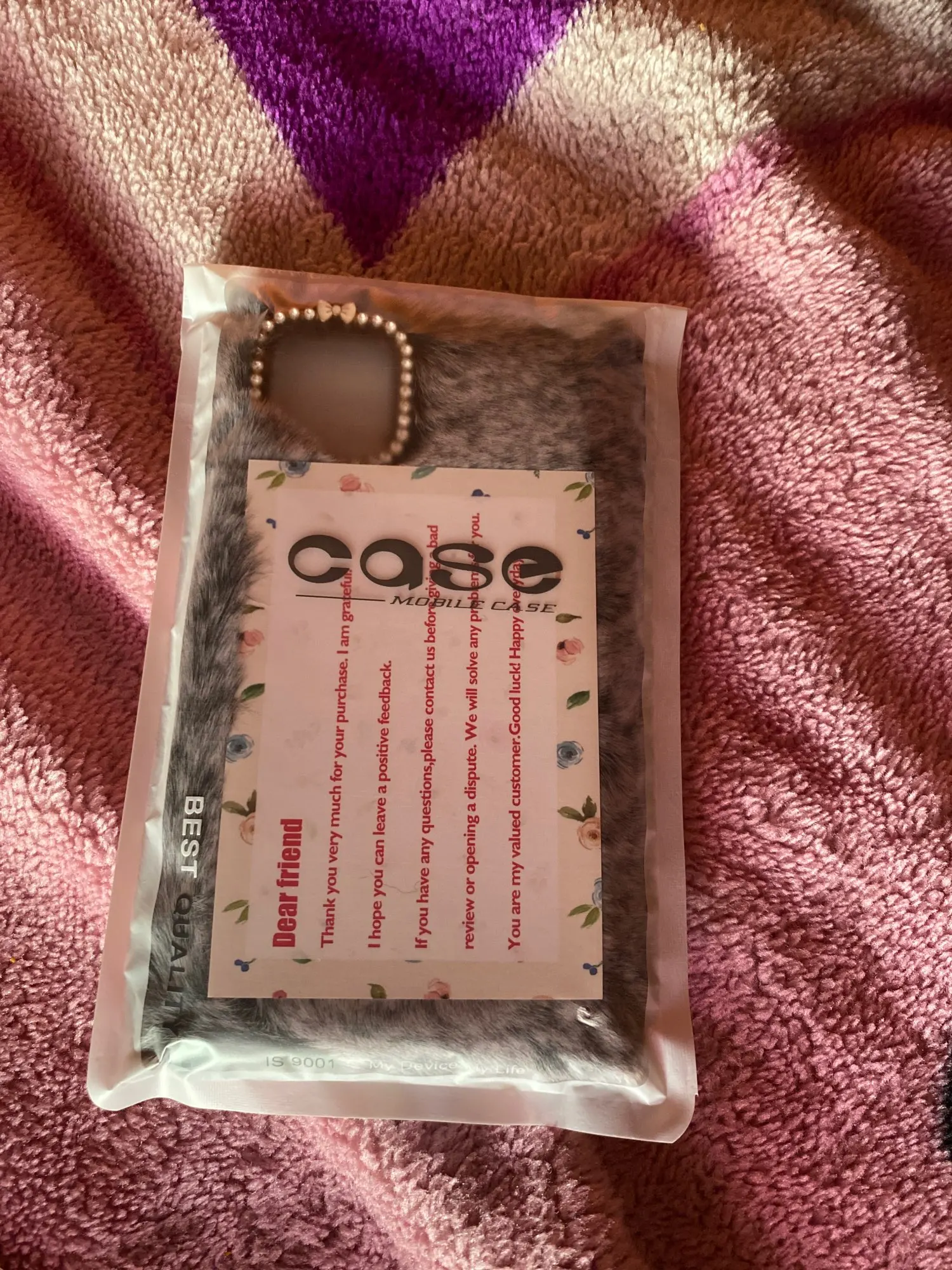 Продавец очень быстро отправил товар, который пришёл почти через месяц в Украину. Хорошо упаковано, приложили записочку (видно на фото). Товар в жизни выглядит, как и на фото. Мех хороший, приятный, пока что не линяет. Камешки все на месте. Чехол камеру не перекрывает, хорошо сел на телефон. Кнопки через чехол хорошо прощупываются. Я очень довольна заказом. Рекомендую!
