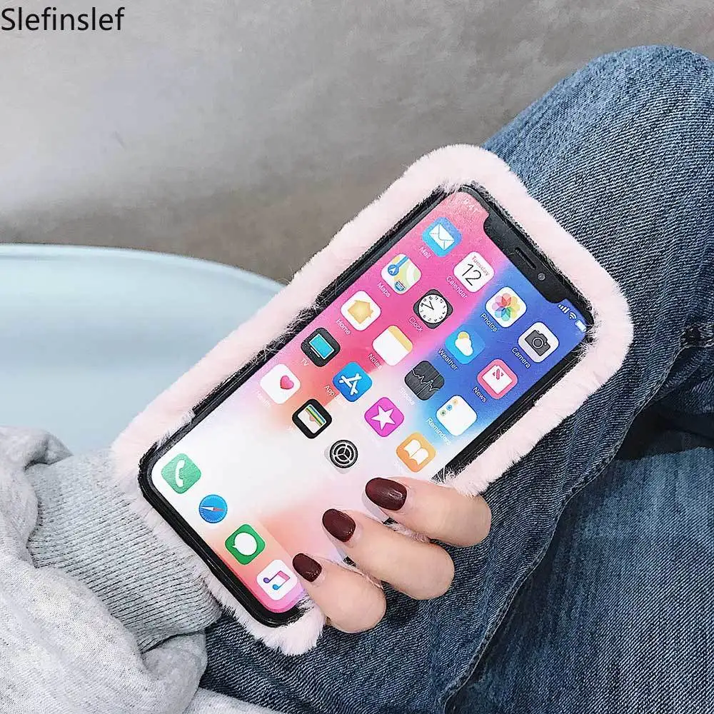 Чехол для iPhone 13, XS Max, XR, X, 12, 11 Pro, мягкий, пушистый, теплый, ТПУ
