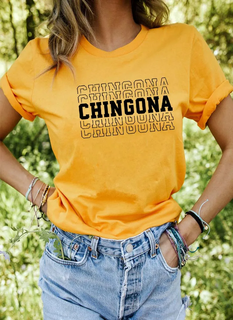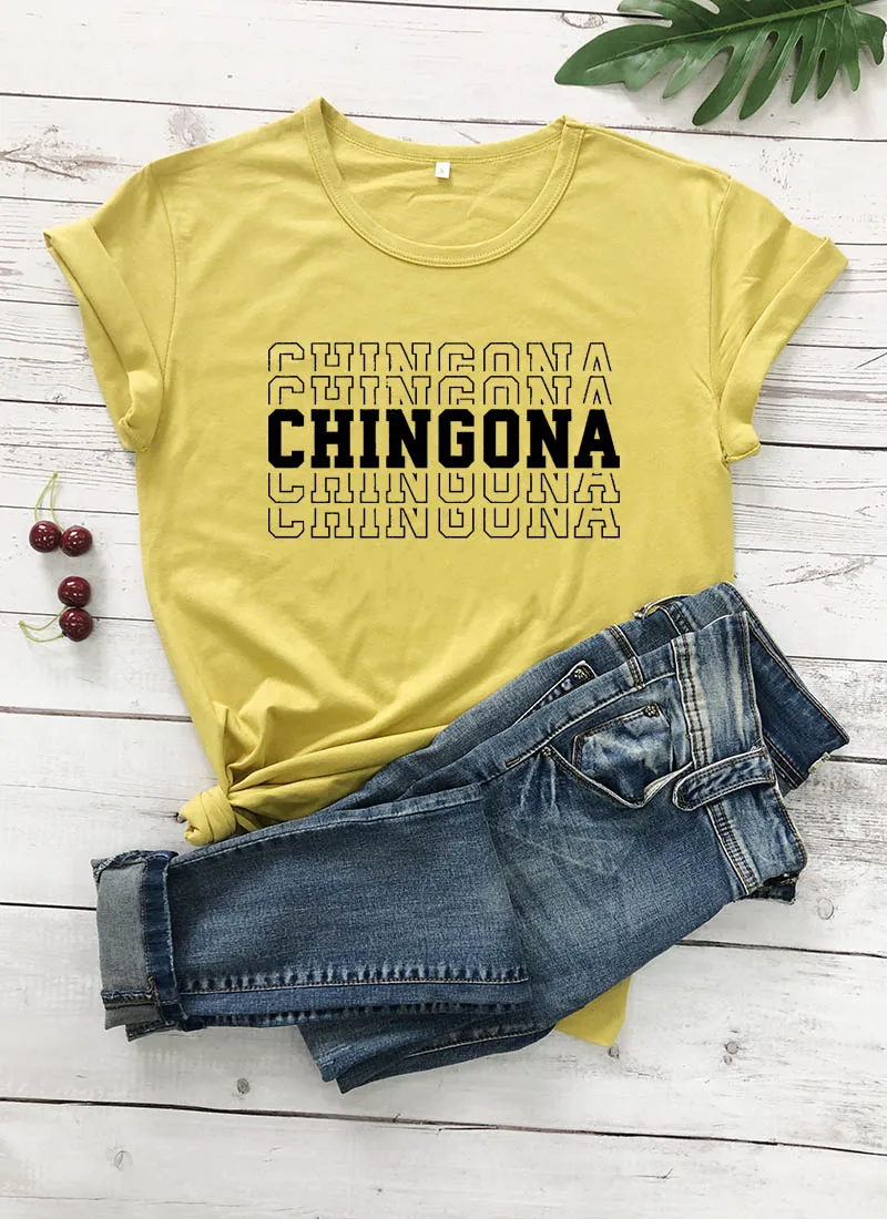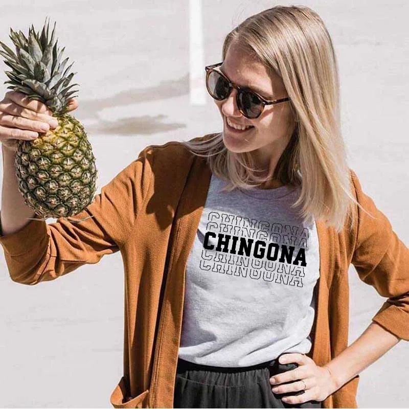 Женская футболка из 100% хлопка Chingona, Повседневная летняя футболка с забавным принтом, испанские рубашки, милые латинские рубашки