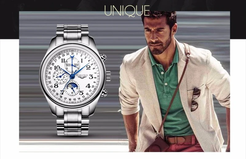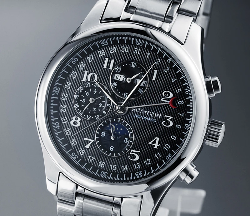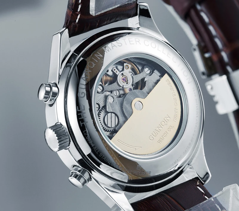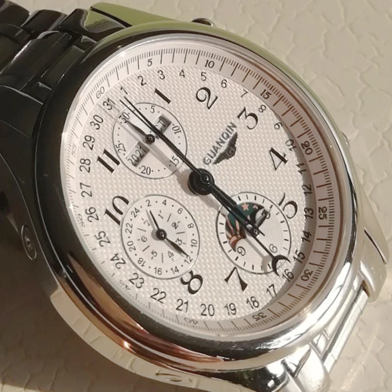 -Торговая марка: GUANQIN-Колебательная система: 20022-Зеркало: Сапфир-Водонепроницаемость: 3 бар/30 м/3 АТМ-Материал корпуса: нержавеющая сталь 316L-Диаметр циферблата: 39,5 мм-Высота циферблата: 11 мм-Ширина ремешка: 20 мм-Ремешок: кожа/металл-Длина ремешка: 24 смGUANQIN 20022. Он встроен в высококачественное многофункциональное автоматическое движение, Обновлено сапфировое стекло (Обновлено сапфировое стекло с 2 марта 2020 года), а также имеет дисплей года, месяц, неделю, отображение даты и фазы Луны, которые вы можете настроить по своему желанию.