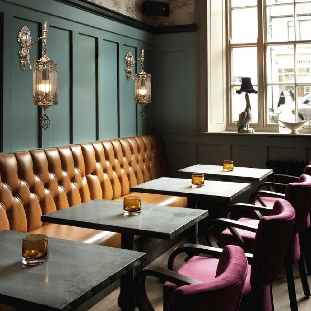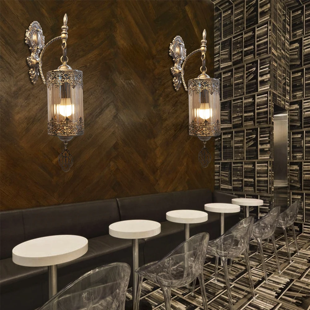 Турецкий настенный светильник в стиле ретро, стеклянный абажур, оцинкованный держатель для бара, ресторана, кухни, кофейни, настенный светильник с креплениями для коридора
