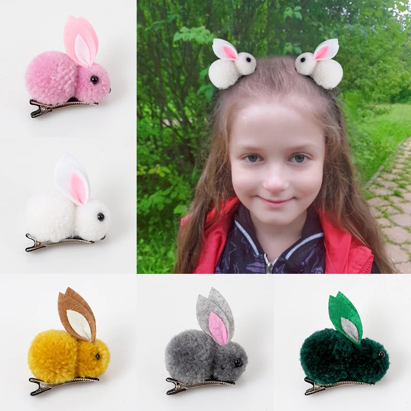 Заколка для волос заколка для волос с кроликом для девочек, плюшевый кролик с ушами, симпатичный плюшевый кролик, аксессуары для волос в Корейском стиле, простой головной убор для девочек