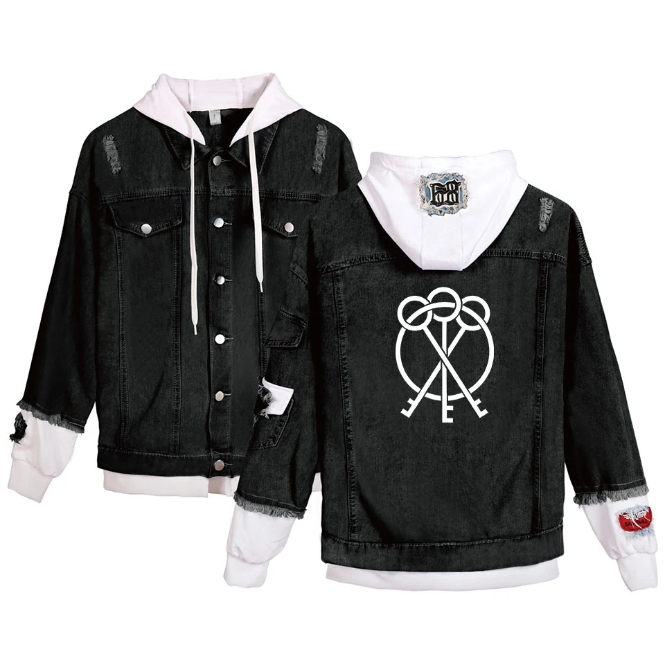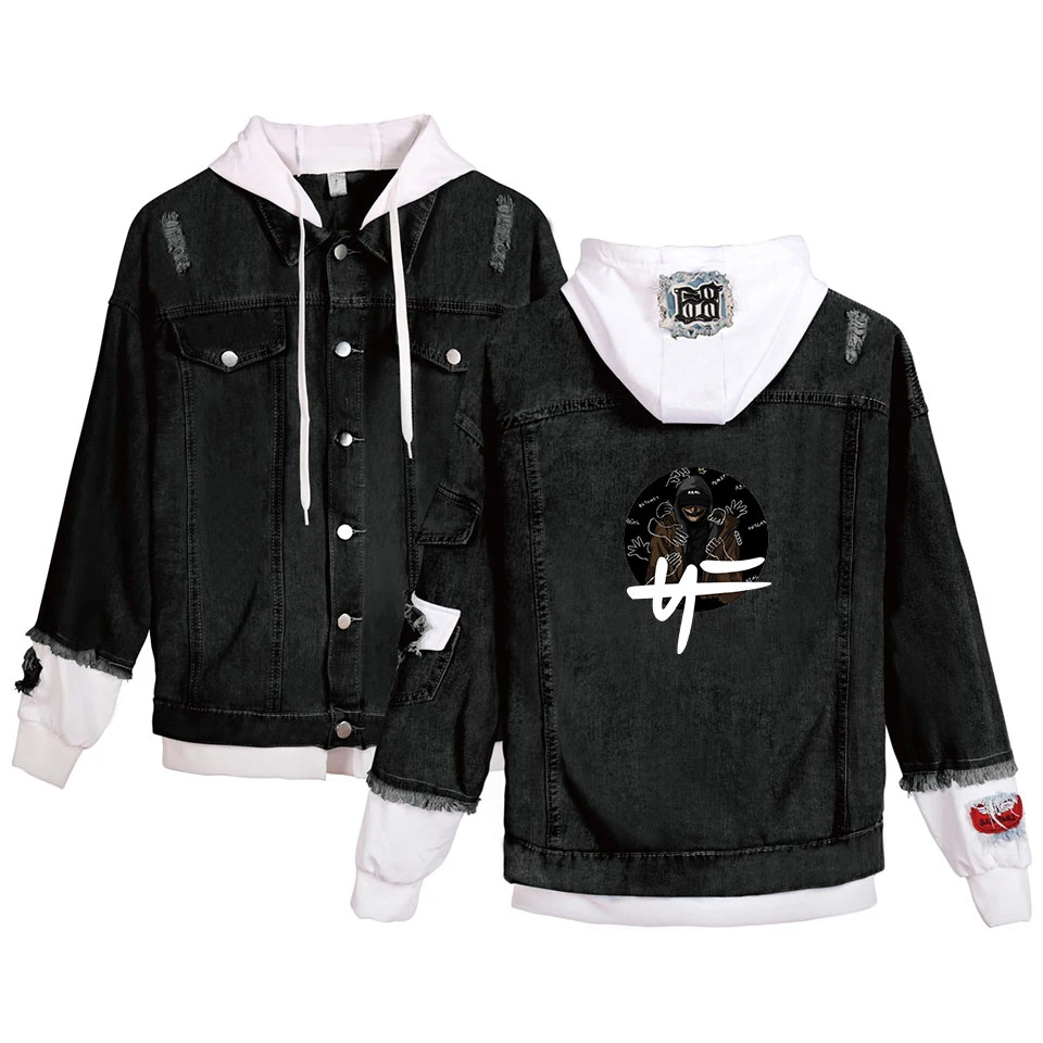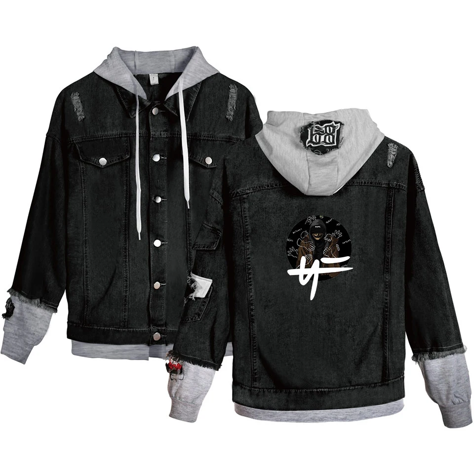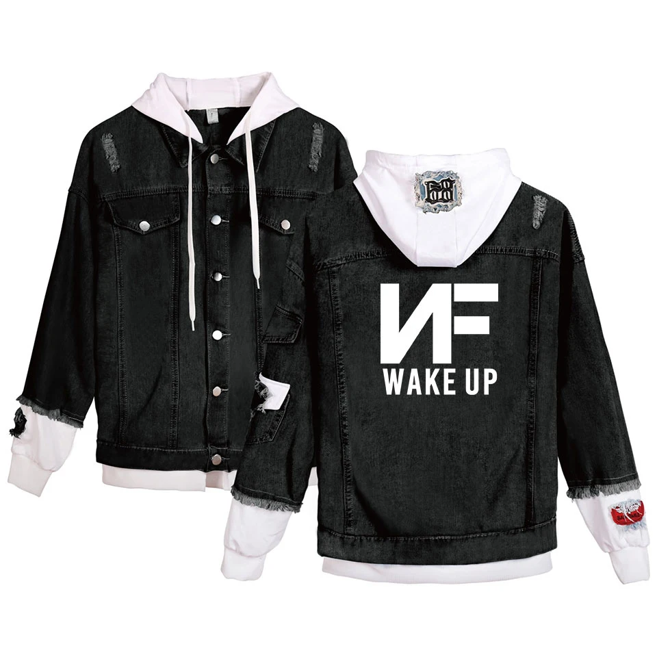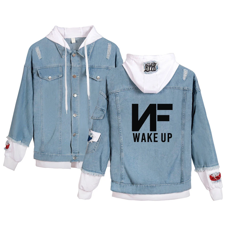 Мужскаяженская джинсовая куртка NF, с капюшоном, в стиле Харадзюку