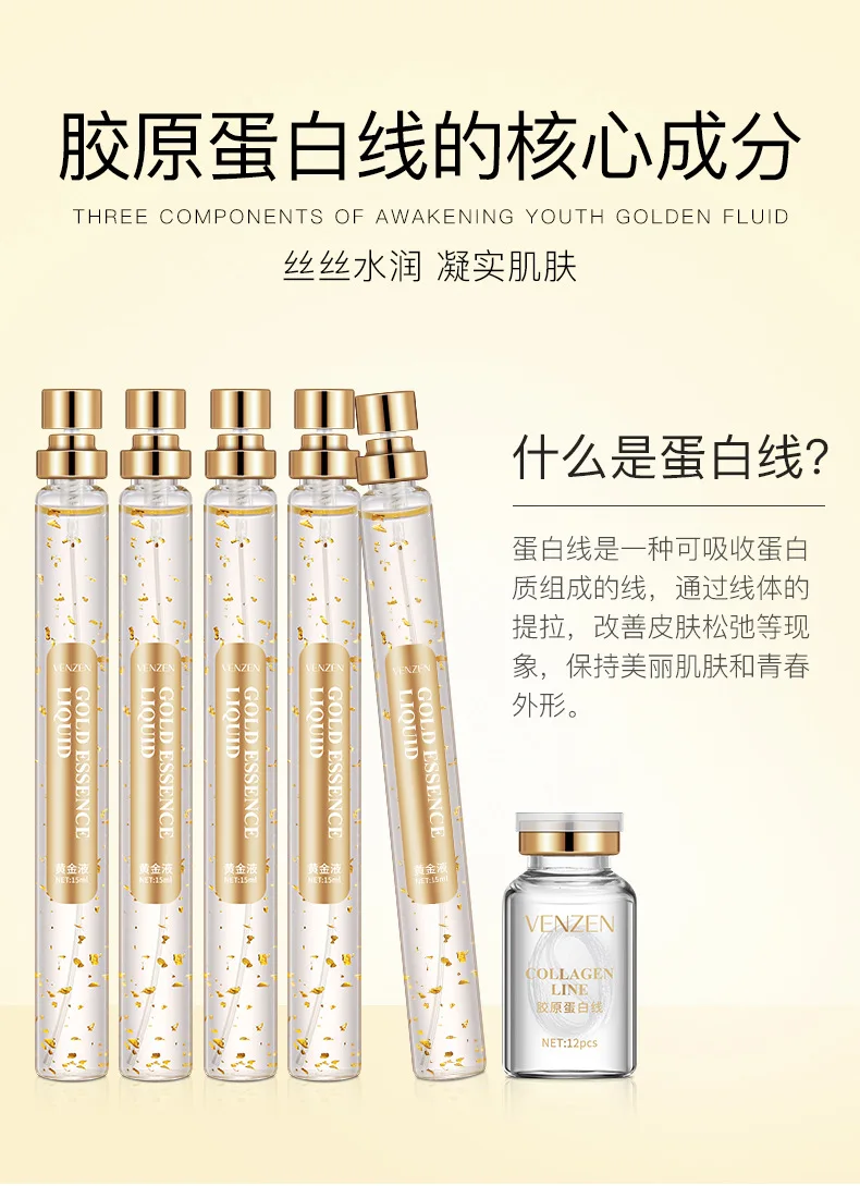 Набор пептидов золотого белка Fanzhen 24k, эссенция отбеливающая лицевая сыворотка, увлажняет поры, золото