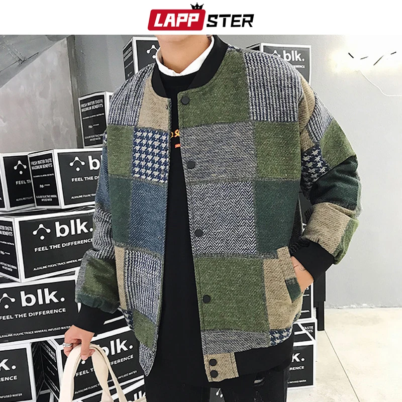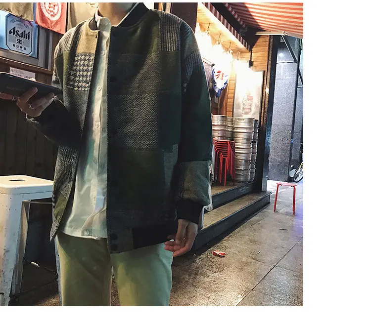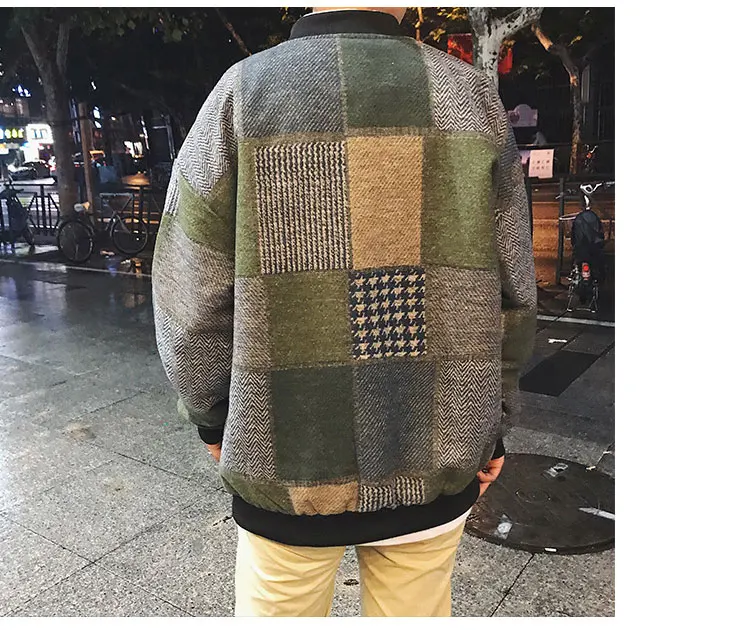 Куртка-бомбер мужская Осенняя в клетку, 2021, Японская уличная одежда