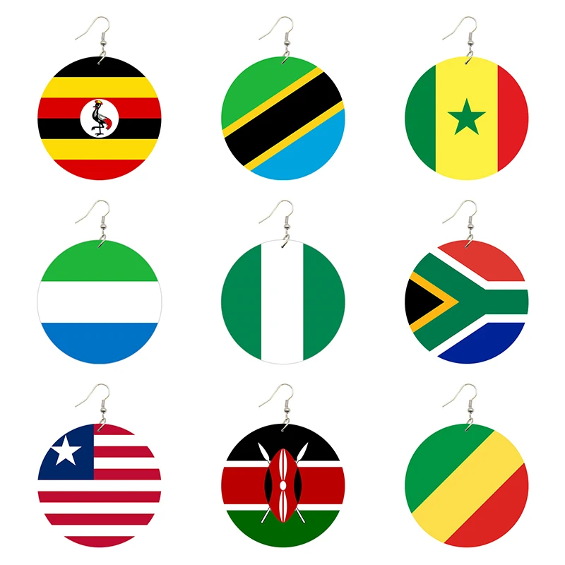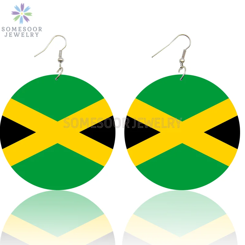 SOMESOOR двухсторонняя печать черный страна ямайский флаг деревянные серьги с фотографиями Африканское дерево ювелирные изделия для женщин
