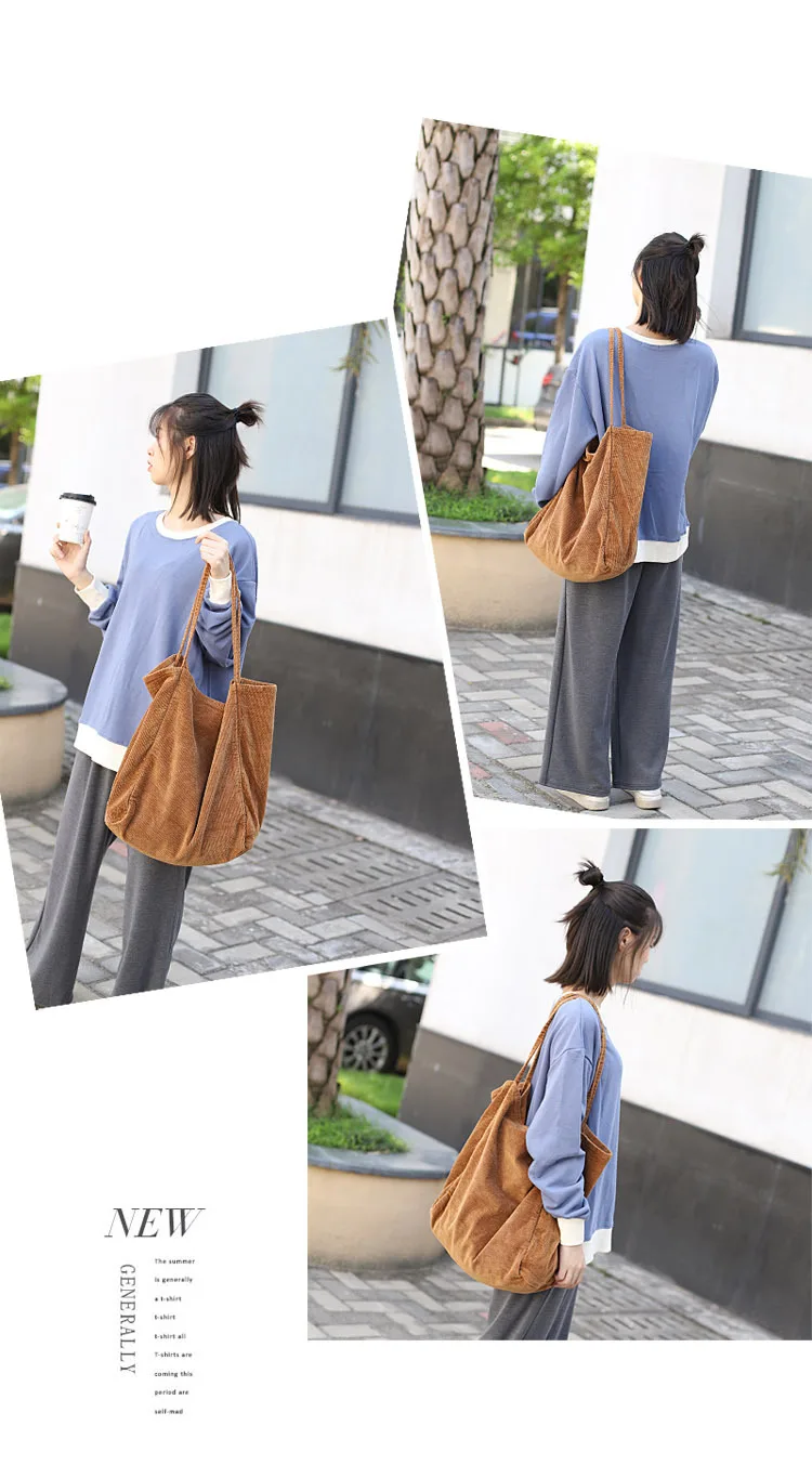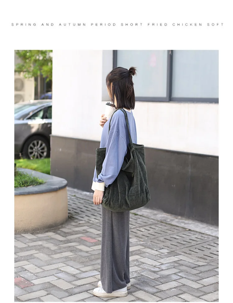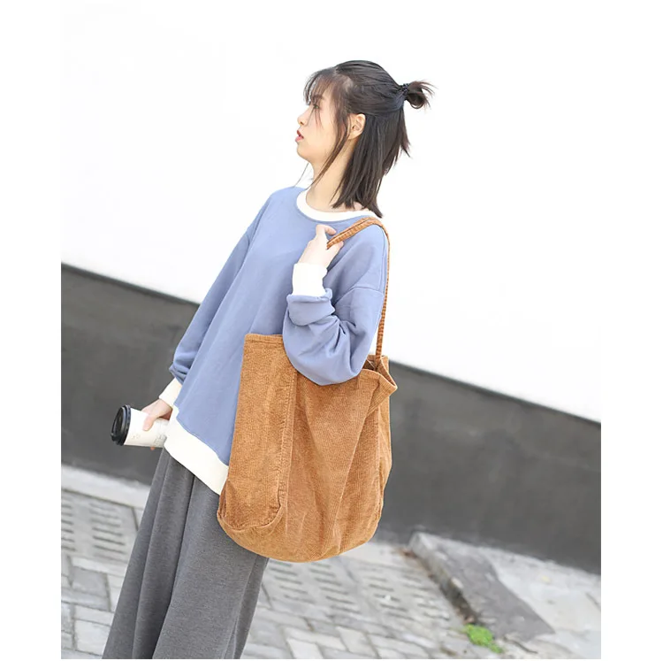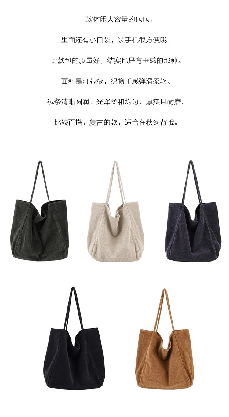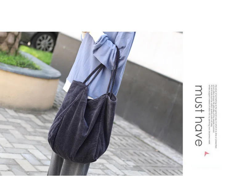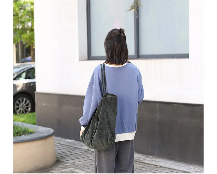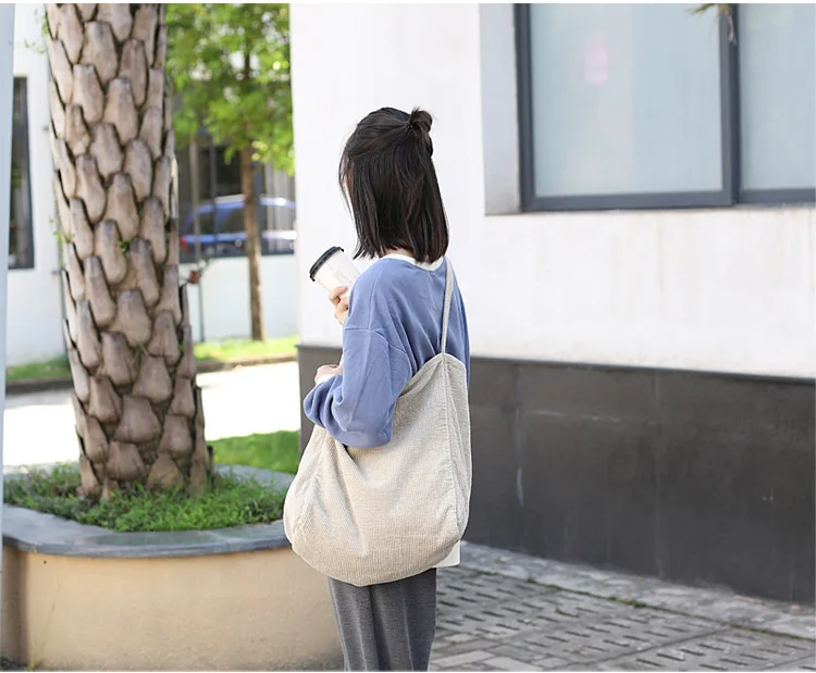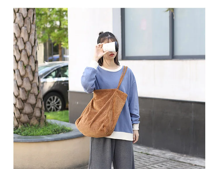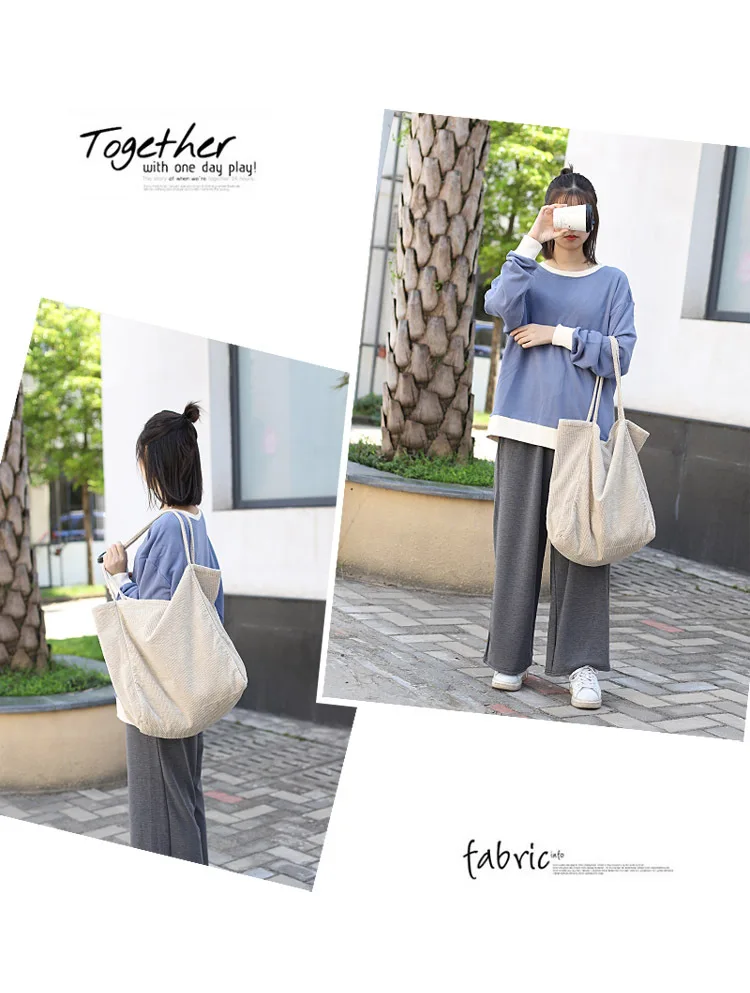 Сумка-тоут женская, Вельветовая, многоразовая, складная