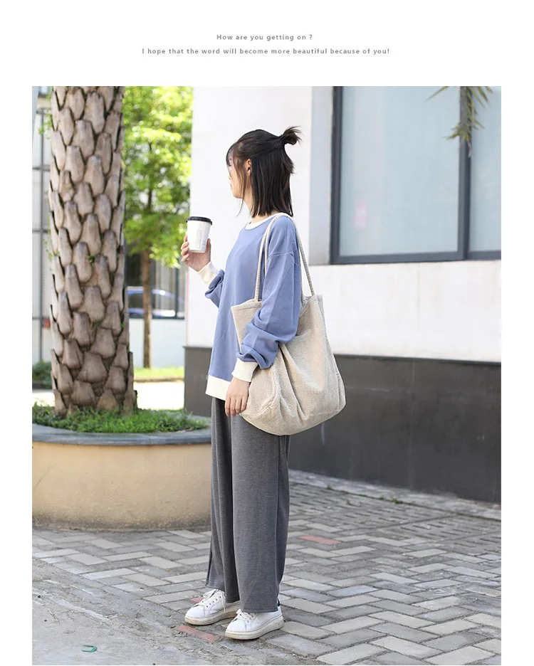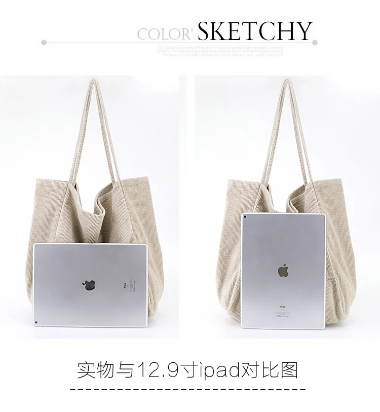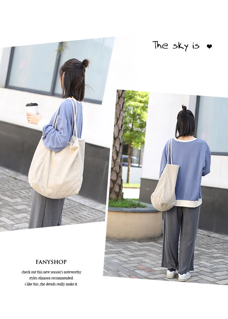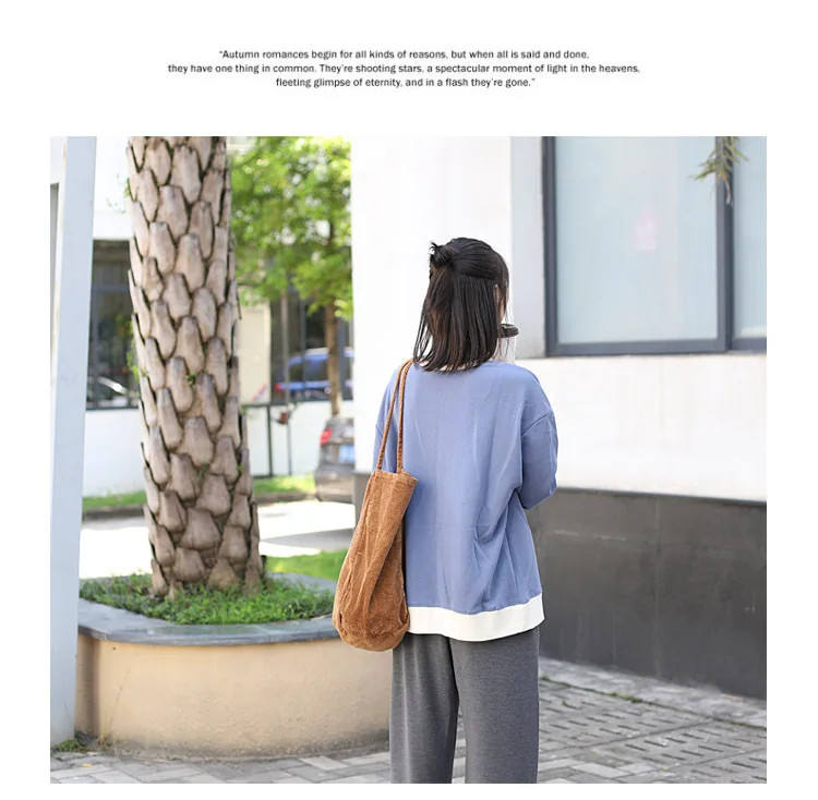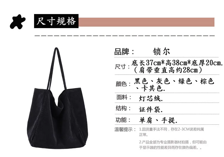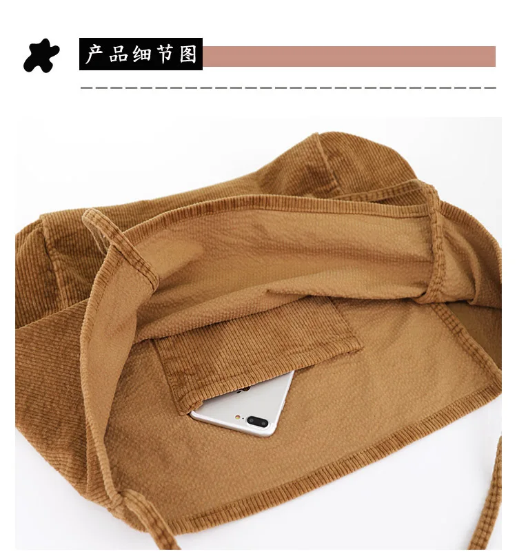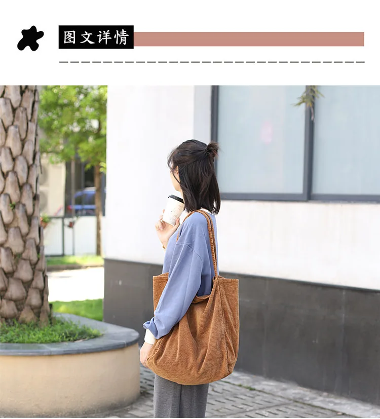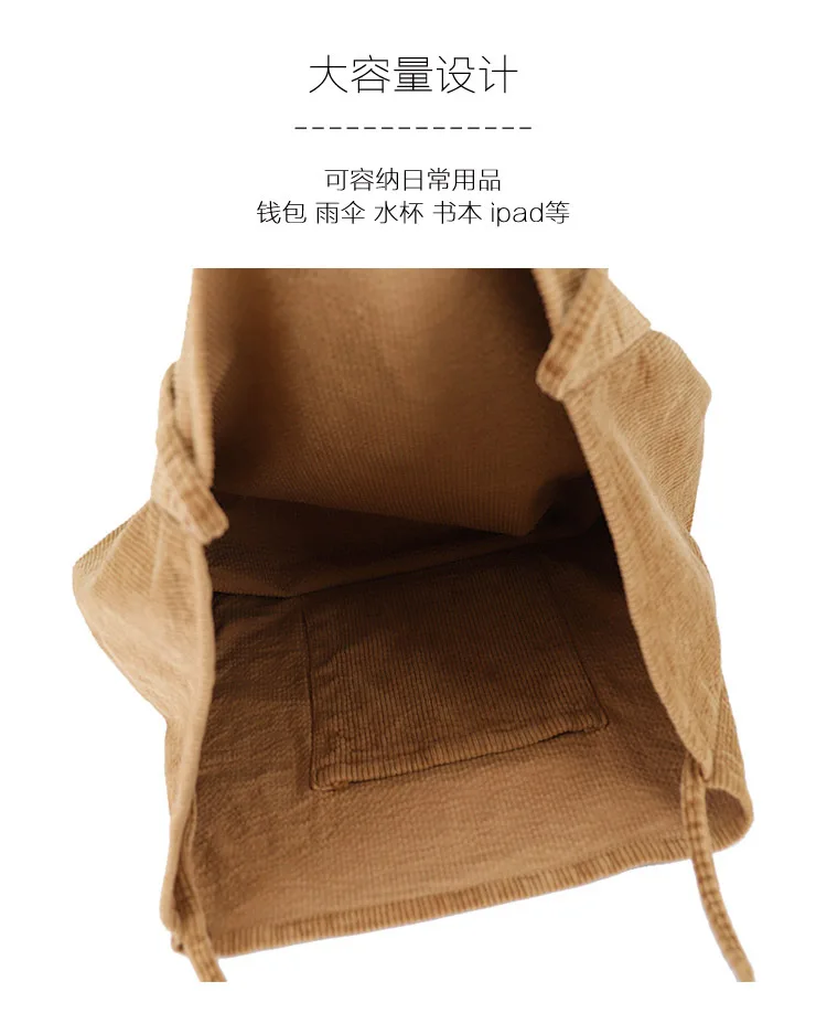 Сумка-тоут женская, Вельветовая, многоразовая, складная