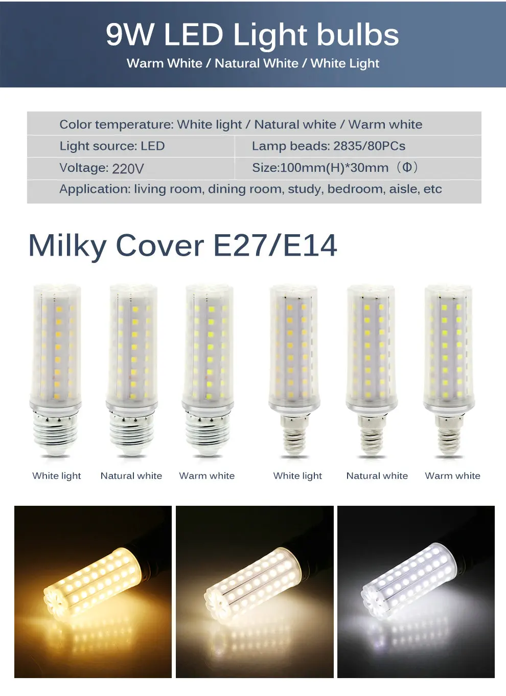 Светодиодная лампа, 6 шт.лот, Е27, 9 Вт, 220 В перем. Тока, 80 светодиодов, прозрачноемолочное покрытие, высокая яркость, без мерцания, Энергосберегающая светодиодная лампа